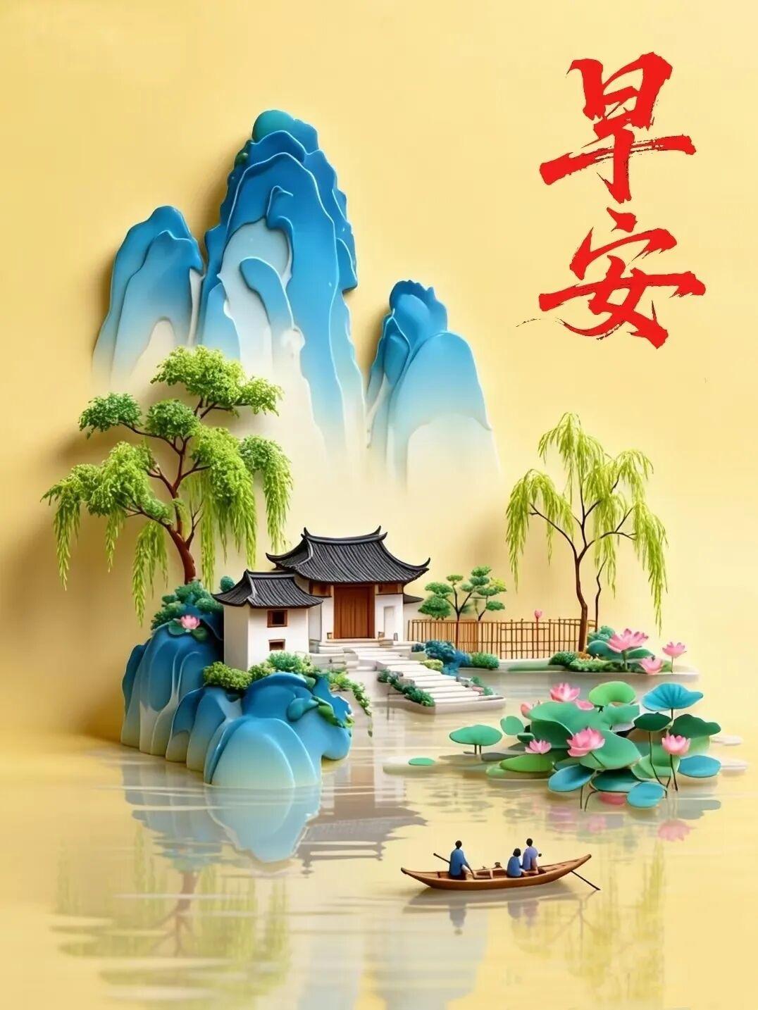 好山好水伴時光,吉言吉語送吉祥。千好萬好是平安,千福萬福是健康。願我無聲的問候,帶給您好運與吉祥!週三早上好!