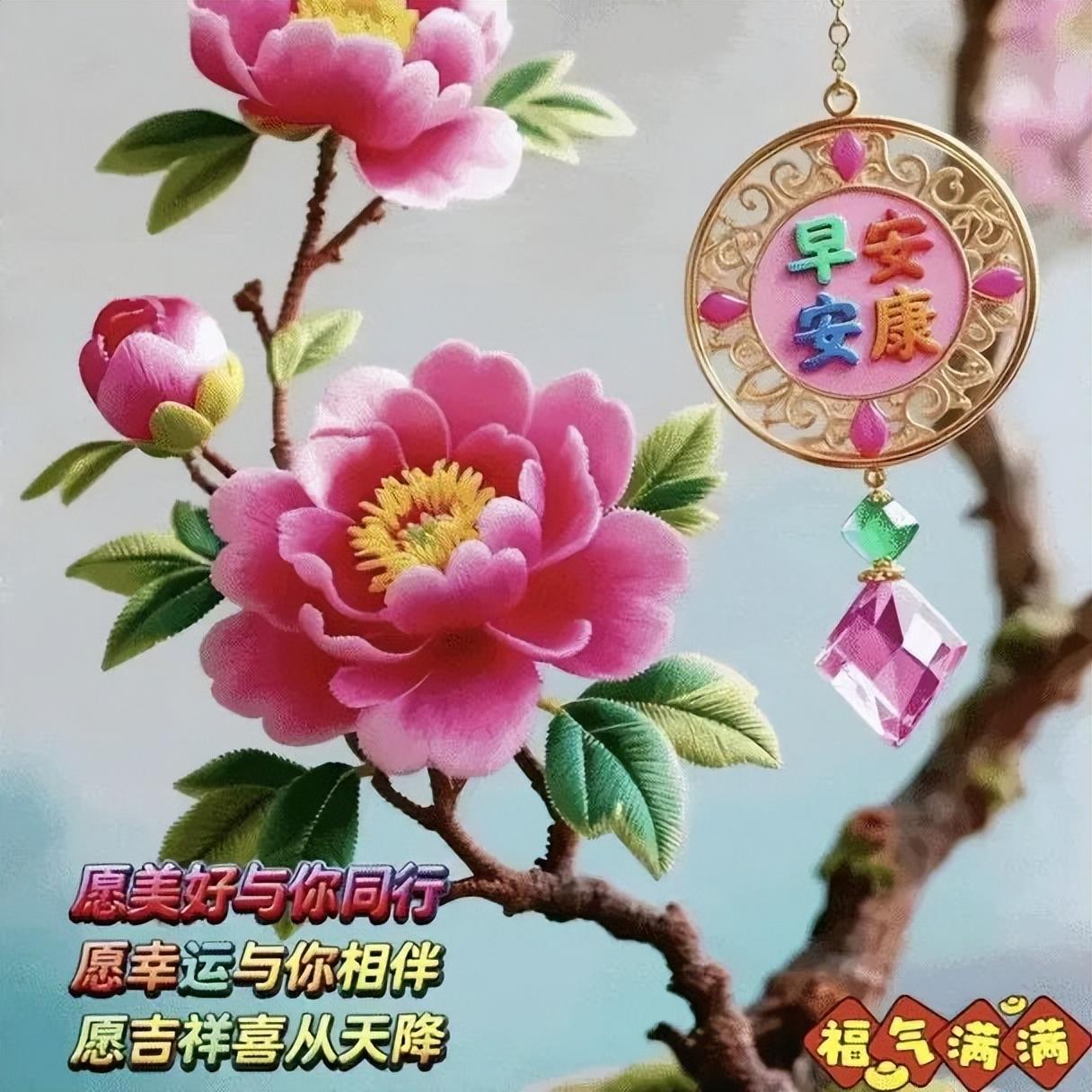 卉中牡丹最雍容,世間摯友最情濃❤️。縱隔千山與萬水,真情永遠心連心。身康體健無煩憂,安康勝過千兩金。每日清晨問安好,快樂知足勝千金。早上好呀!