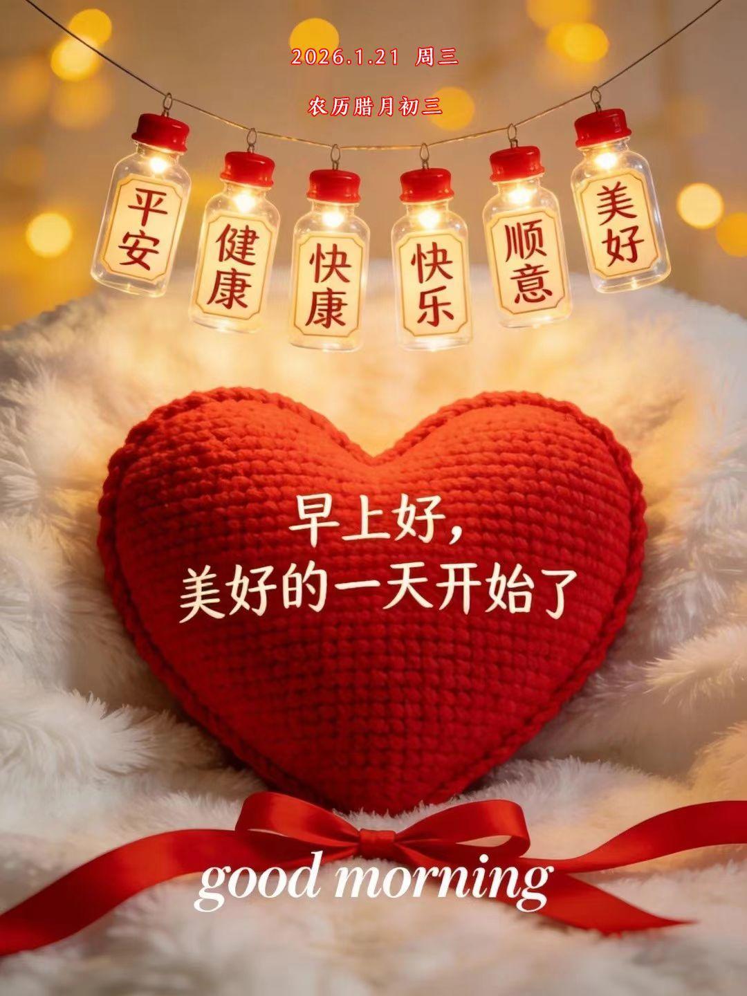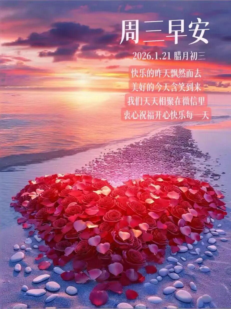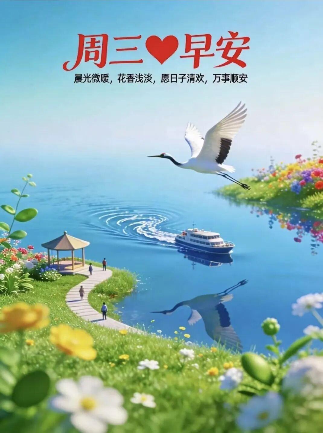 清晨醒來週三至️,美好祝福送給你。願你今日好運連連到✨,工作順心沒煩惱,笑容常在臉上飄,健康平安懷中抱️,幸福生活樂淘淘。早上好!