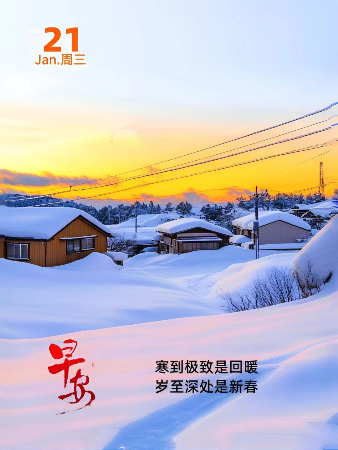 季節變遷,日曆輕翻,不經意間已至大寒。願人間不寒,溫暖常伴,諸事順利,喜樂長安!早上好!