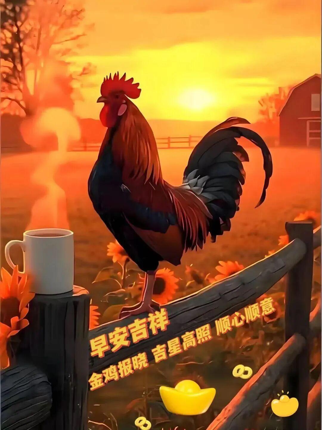 金雞迎晨送吉兆,財福滿盈日子好。週末願你樂淘淘,健康平安無煩擾,財源廣進節節高,事事順心沒煩惱!早安吉祥,週末愉快!