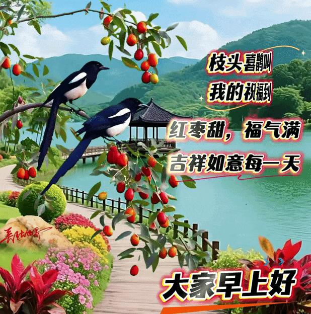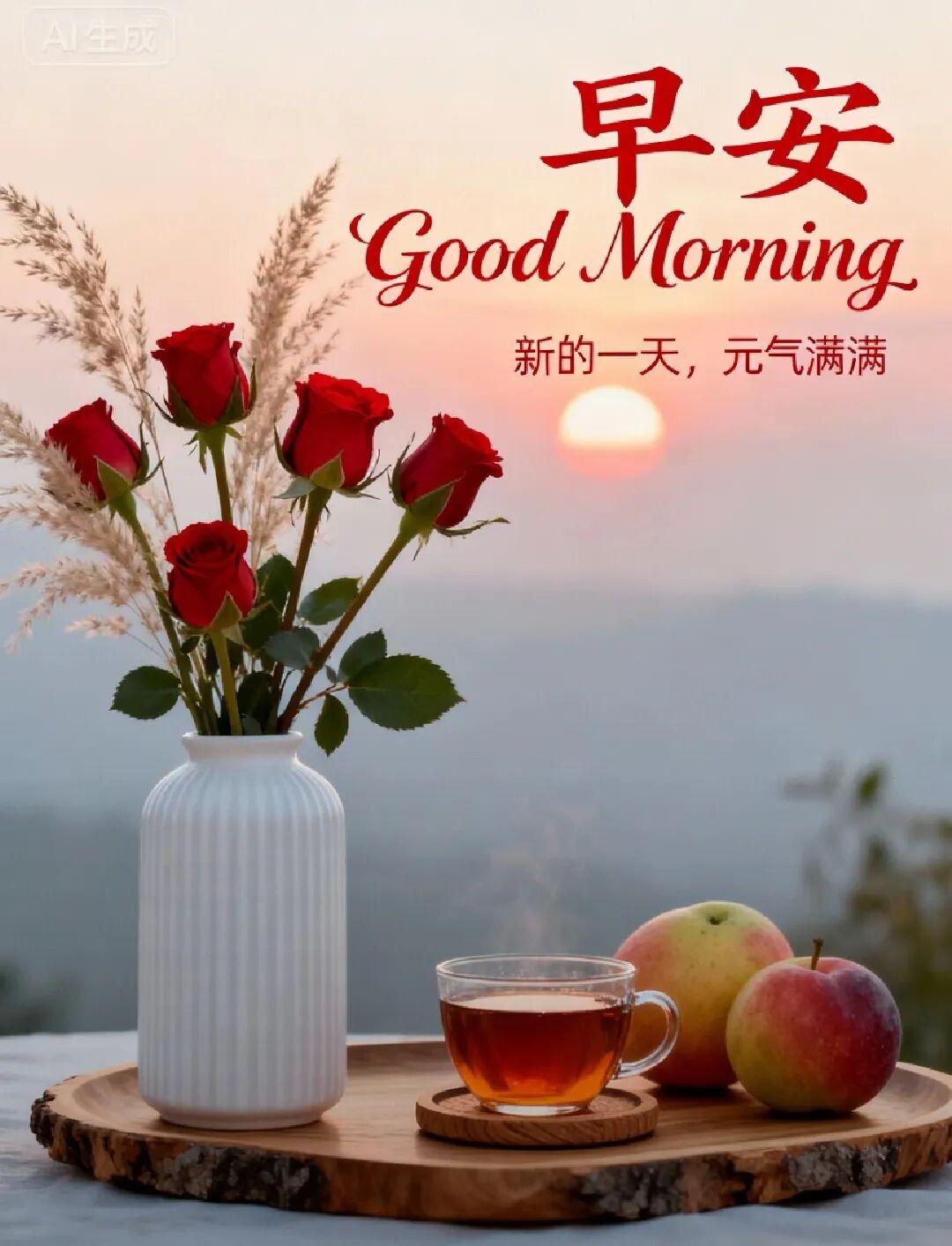 日月伴人老,情誼比山高!雖然相見少,心中忘不了!每天一清早,相互來問好!短短兩三語,濃濃心意到。新的一天,早上好!
