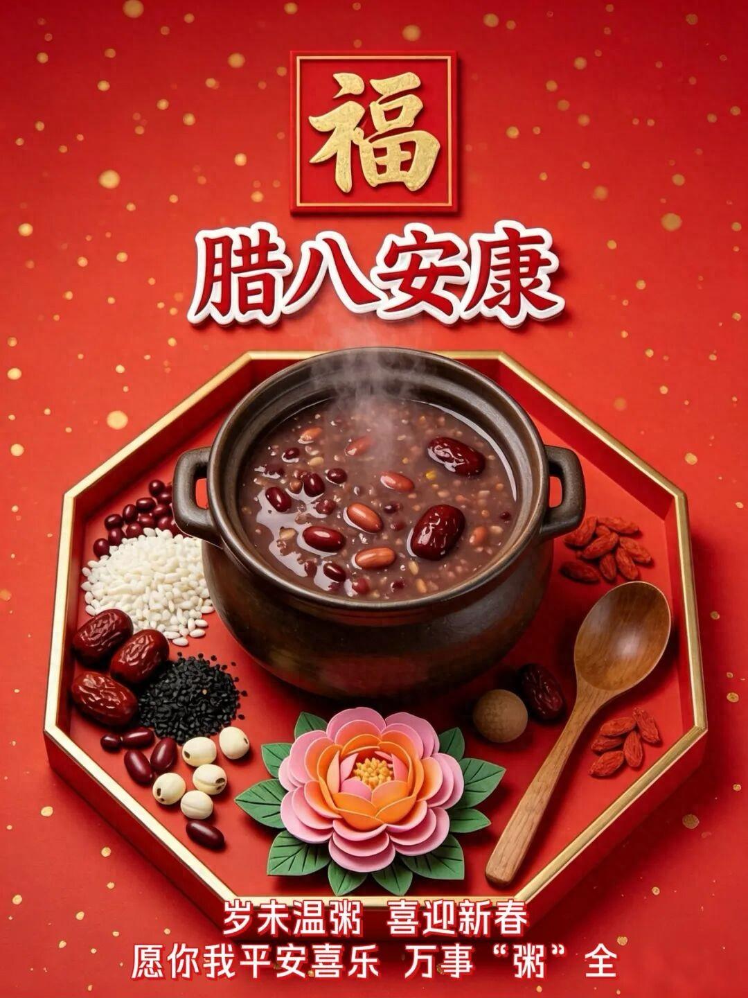 臘八已至,新歲有期:存八方喜氣,集八方瑞氣,納八方貴氣,匯八方福氣。好運開始,“粥”而復始,幸福從此,恆常無至。祝臘八節闔家幸福快樂。