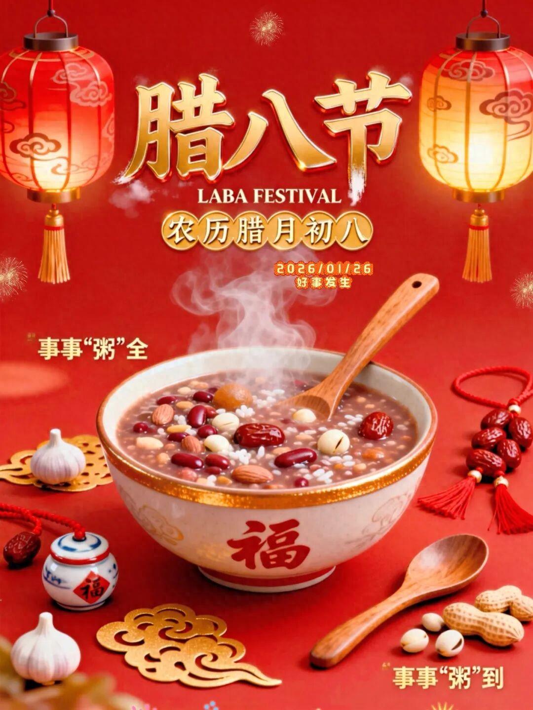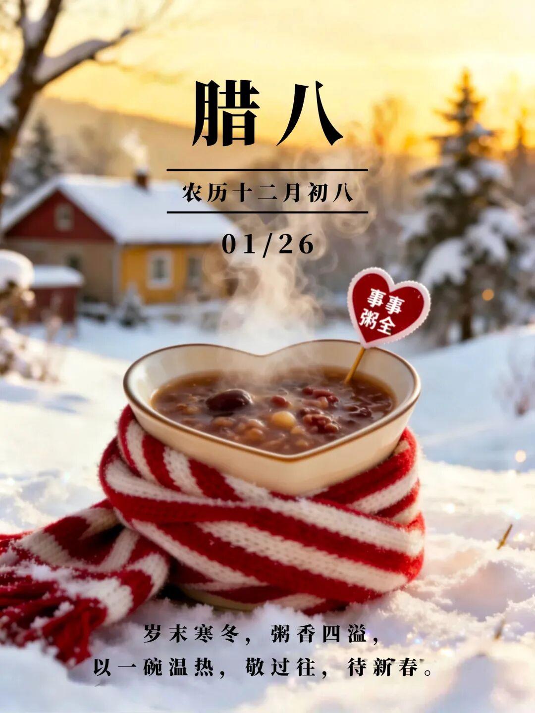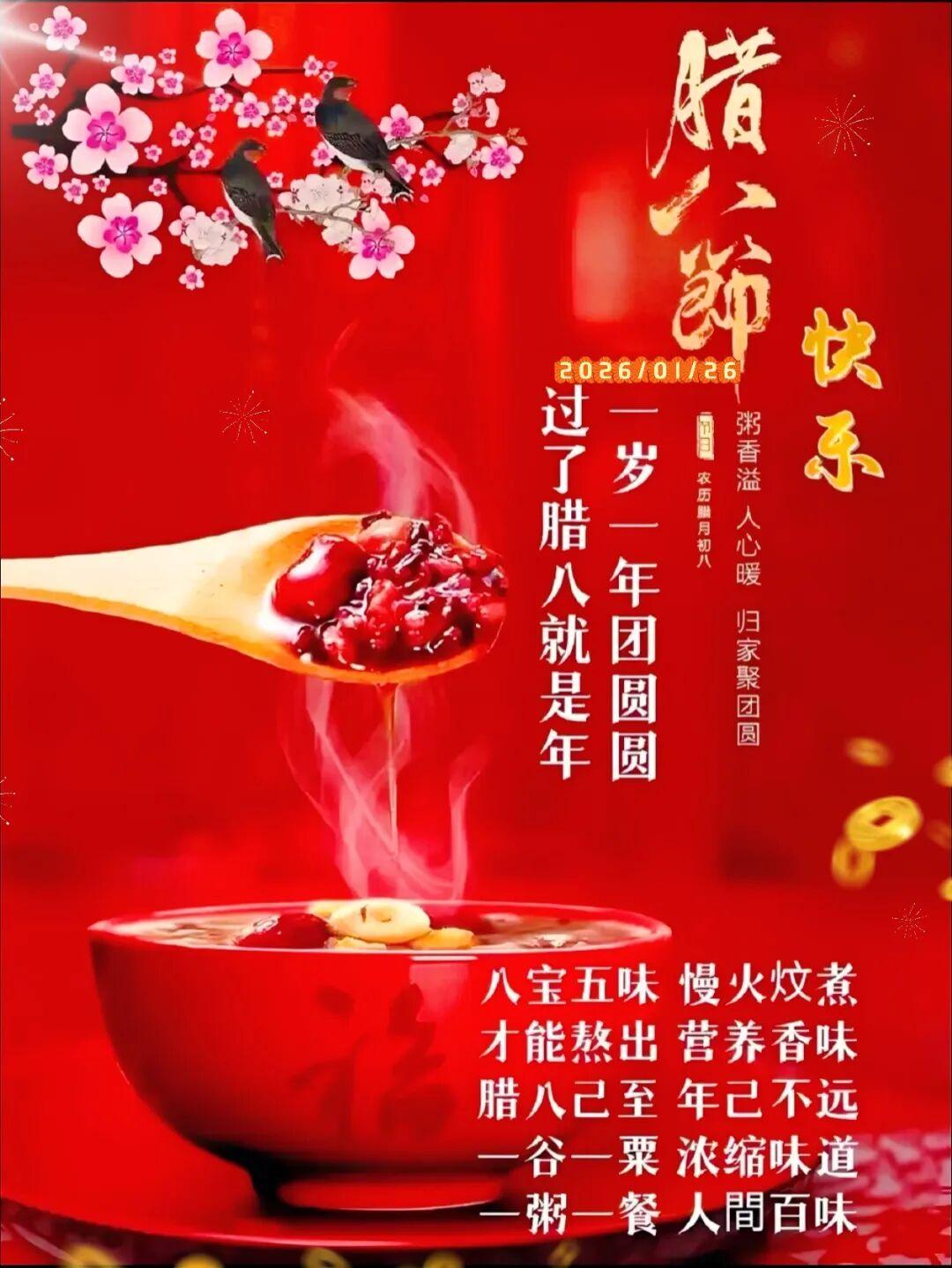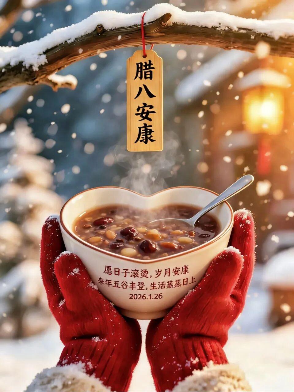 今日臘八,願家人身體棒,心情好,2026事事都“粥”全!臘八節,✔️送祝福:一碗甜粥,闔家歡樂,好運連連,幸福久久!☘️2026.01.26臘八,祝各位家人:喝粥暖胃,享福暖心,平安如意!