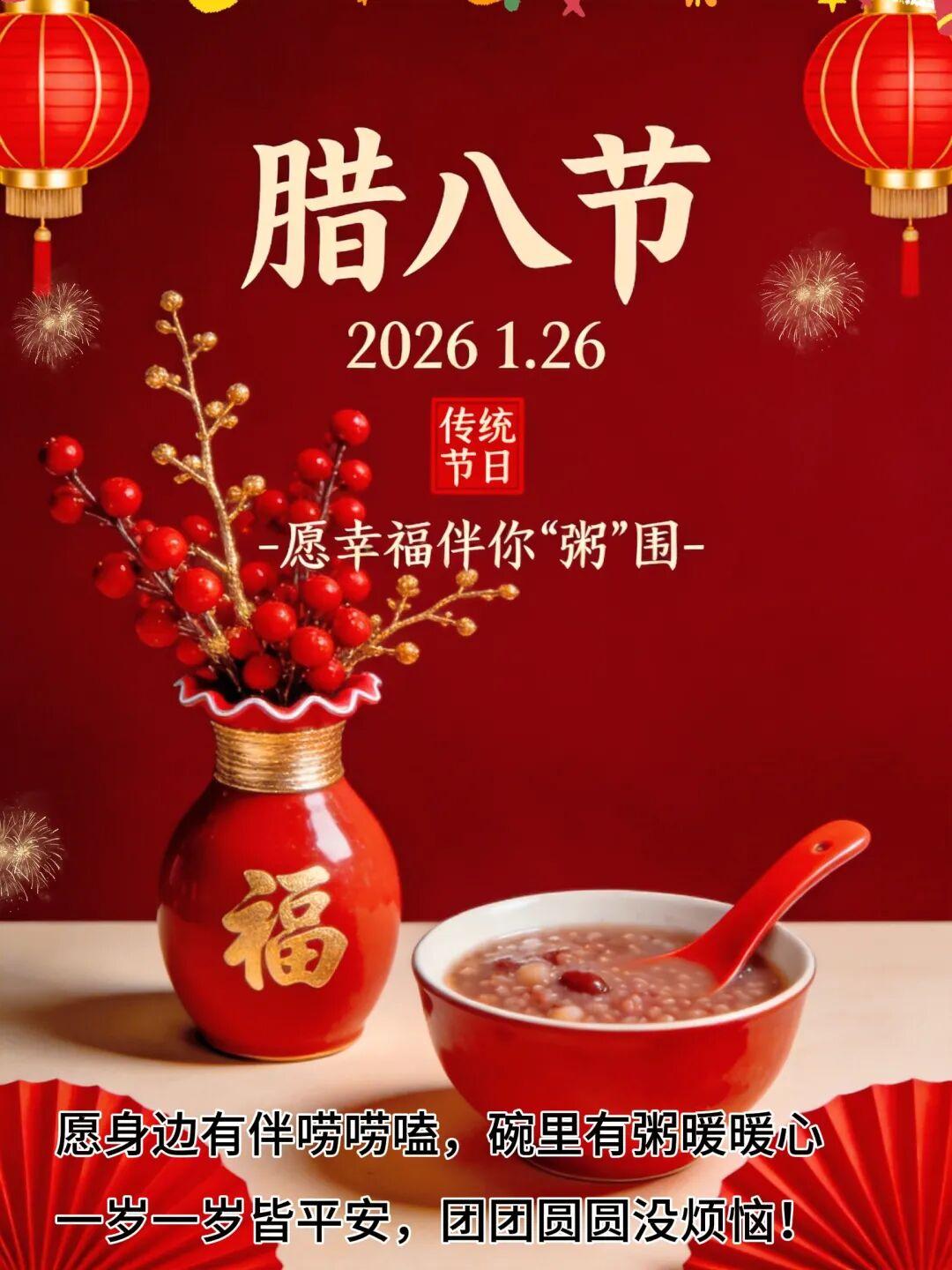 臘八就蒜喝粥,願日子順順,全家樂呵呵! 一碗熱粥暖臘八,2026福氣滿滿事事圓! 臘八有人陪,粥暖人團圓,歲歲皆安!臘八一到好運來,喫得香笑得甜,全家都開懷!2026臘八送八粥,願健康快樂,日子越過越紅火!☘️