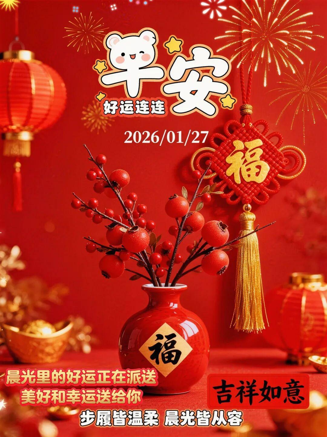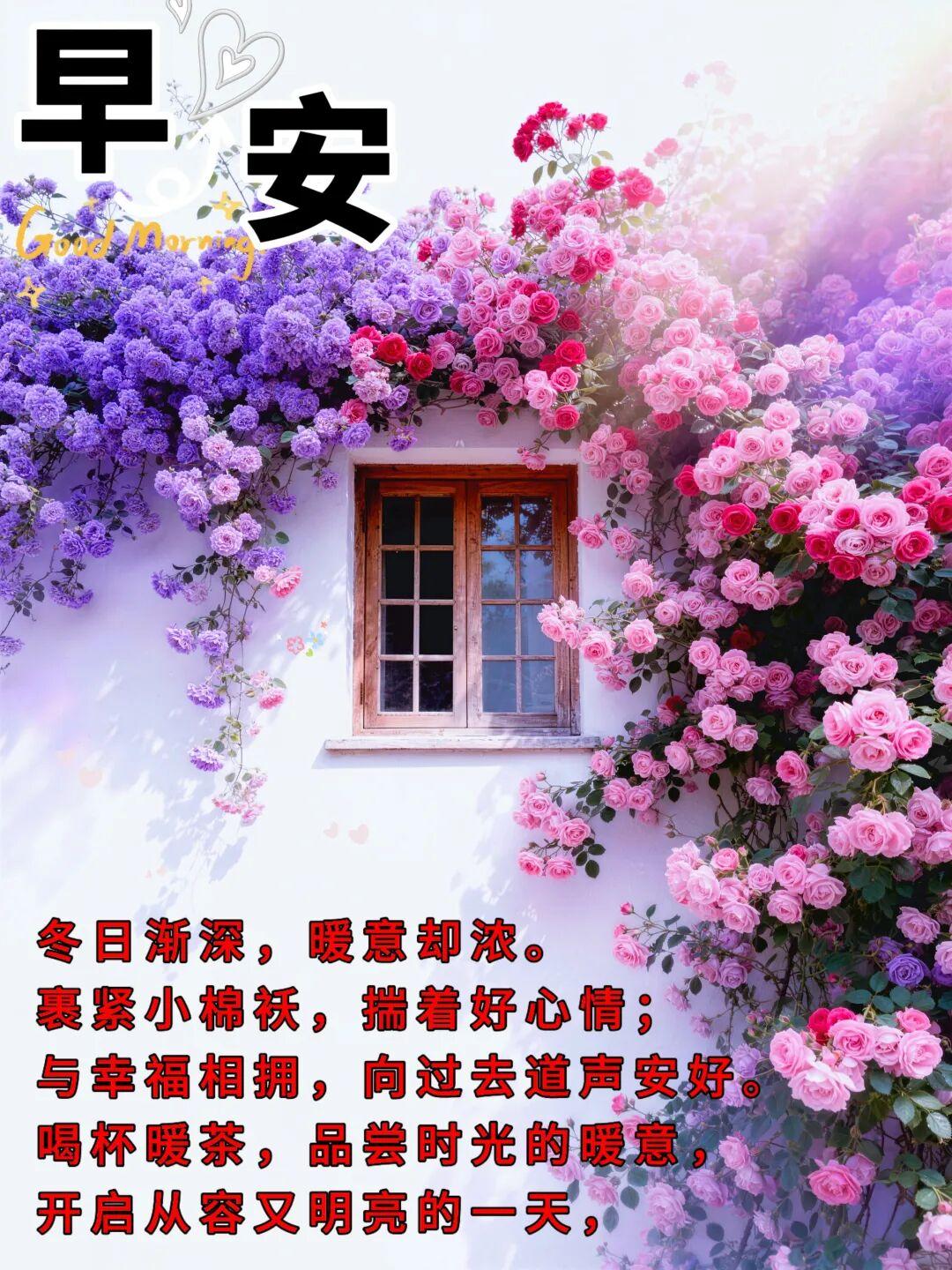 吉祥祝福你收好了,天冷記得多穿件衣裳早上起來喝杯熱乎的茶好好心疼自己,健康快樂纔是最大的寶貝;慢慢往前走,不比別人、不瞎琢磨,家裏天天有陽光,福氣運氣全都有;身邊有伴兒不孤單,手裏有錢心不慌日子過得甜滋滋,啥事兒都順順利利;天天笑口常開精神好,心態樂觀人不老,平安吉祥圍着你轉,幸福日子過不夠。