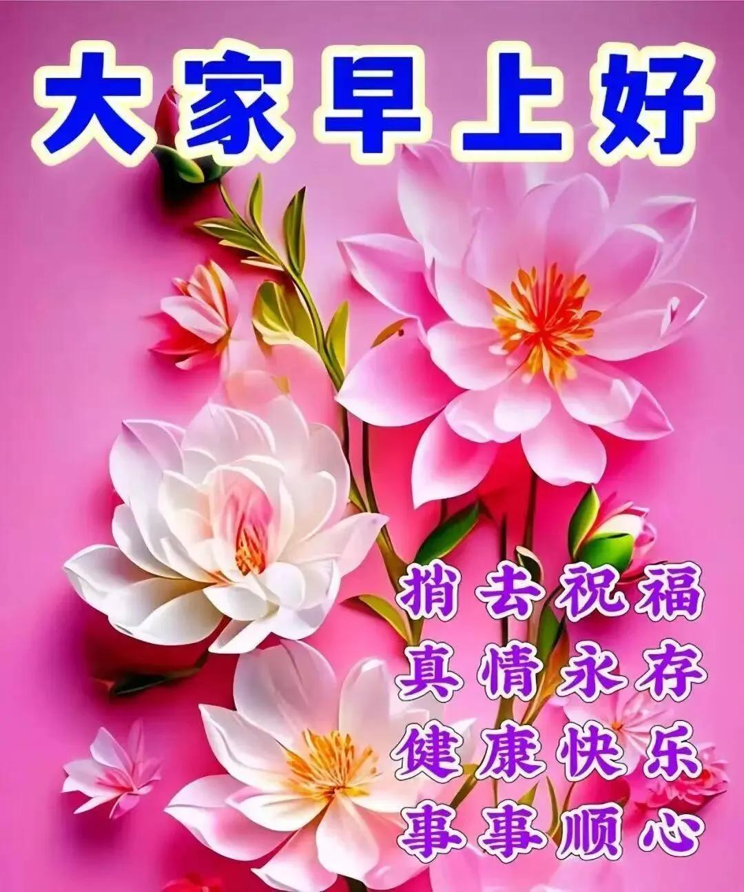 新的一天,新的啓航,有一種關懷,叫平安!有一種祈願,叫健康!有一種相隨,叫幸福!願大家財豐,福臨,好運來!祝大家身強體健,萬事順遂!福澤滿羣