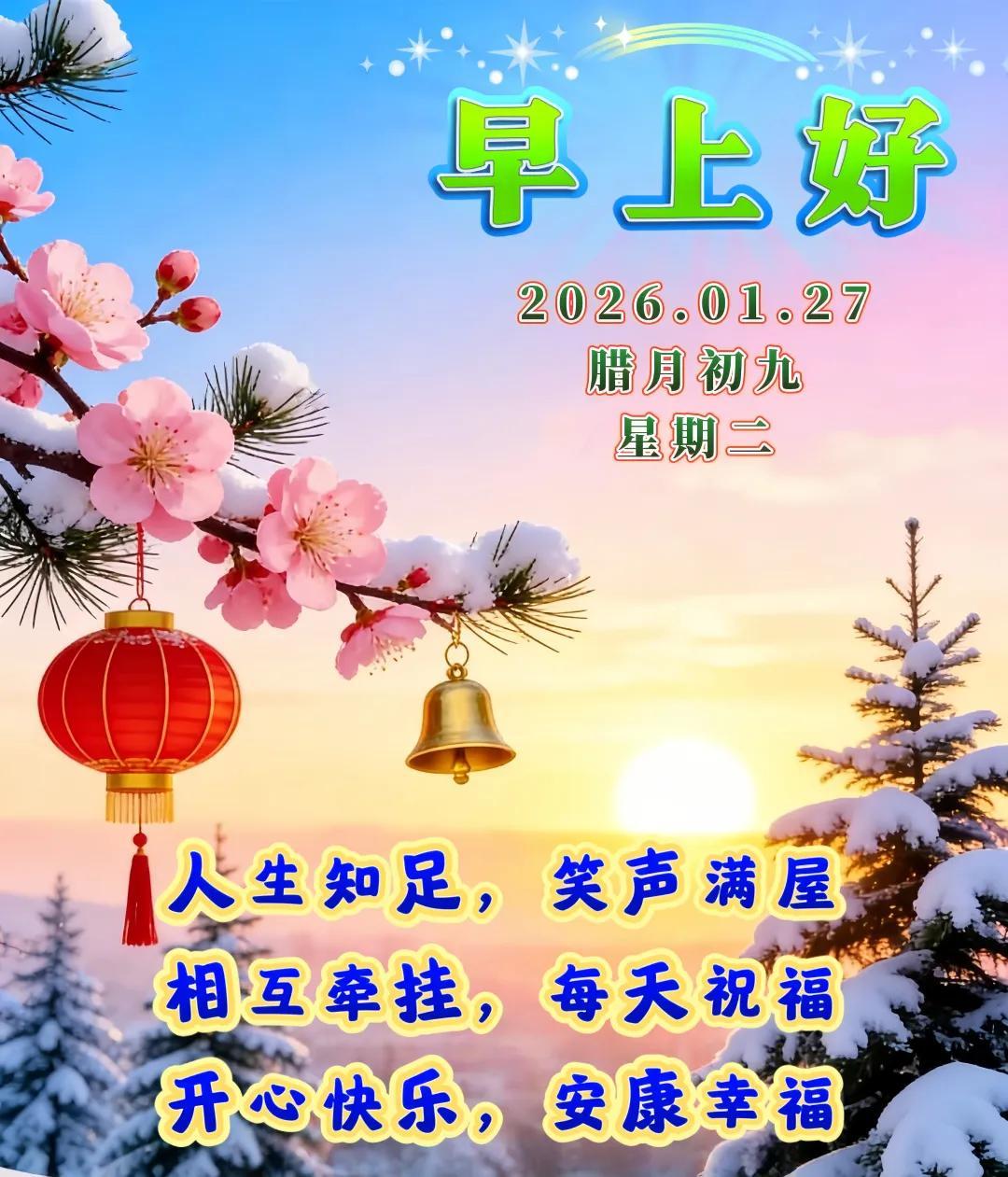 今天是2026年1月27日,星期二,美好的清晨,我們一如既往,報個平安,傳遞祝福,感恩人生中的友情和緣分;願我們平安健康,幸福相伴,快樂每一天。早安!❤️