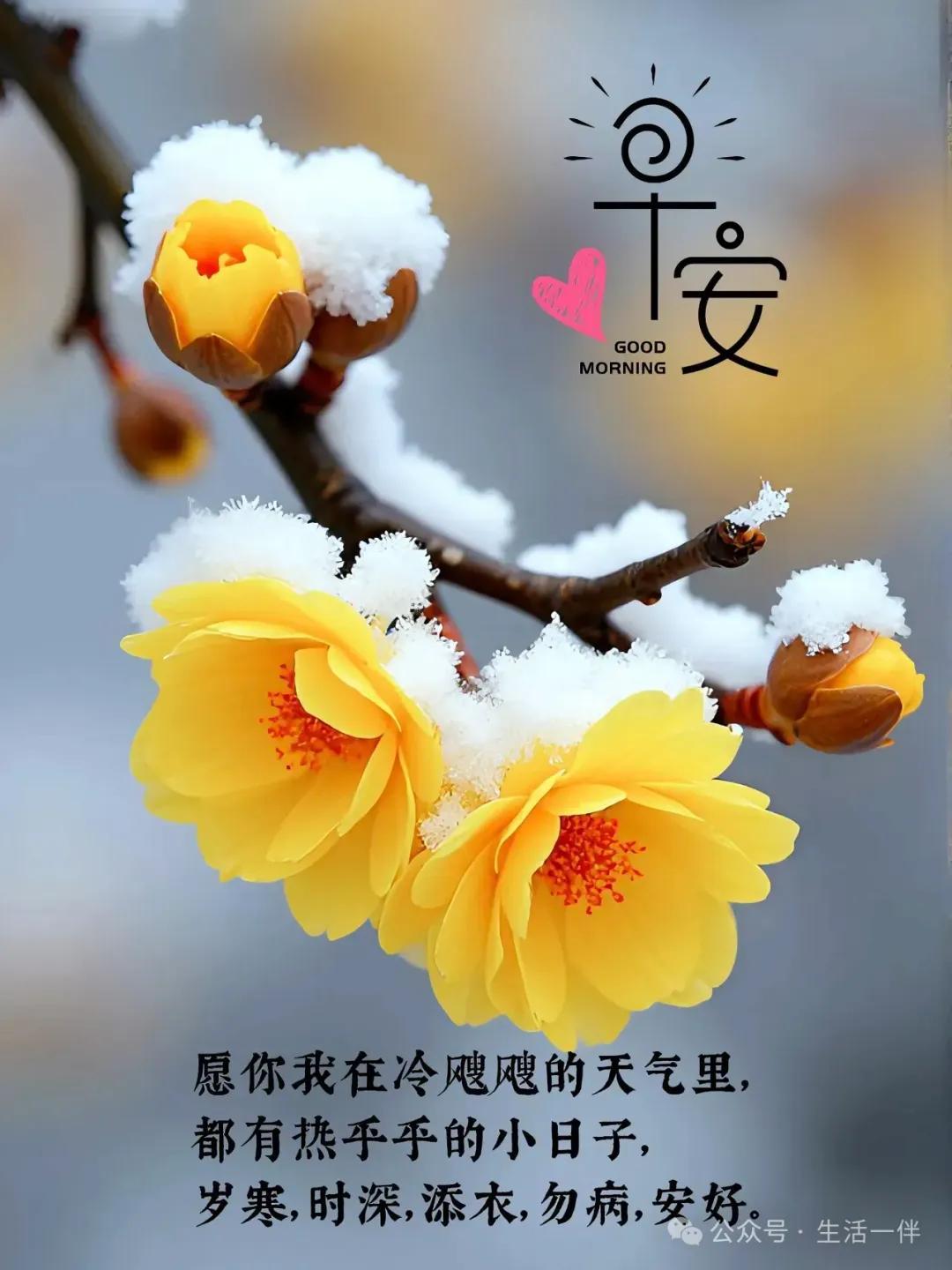 ☃️早上好!降溫天氣,請注意保暖!雨雪天氣,道路溼滑,出行注意安全!在這凜冽寒冬,送上最暖的問候與祝福。彼此多珍重,平安喜樂每一天!早安️