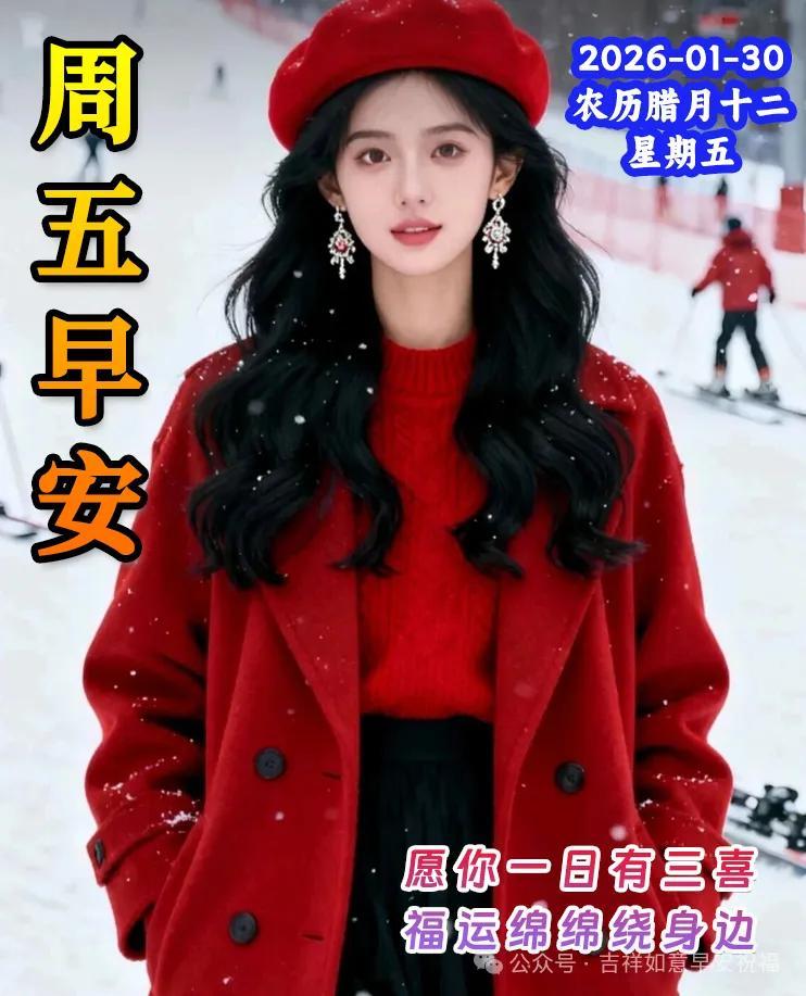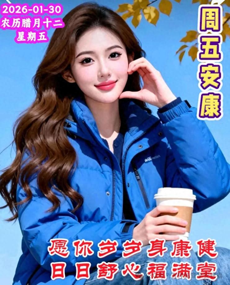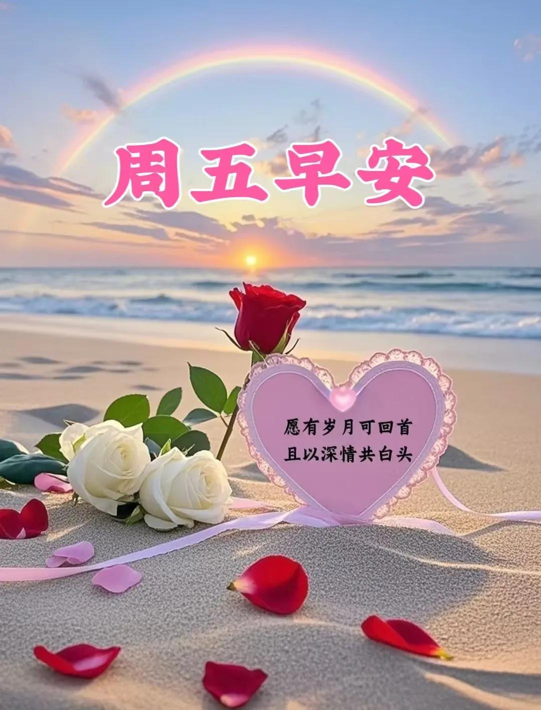 週五晨風柔,光景歲月稠。朝霞輕輕染,暖意緩緩流,暫歇一週辛勞,拾得心境自由。願君體康泰,無痛亦無愁,年年常寧靜,萬事皆平順,生活溫馨且長久。