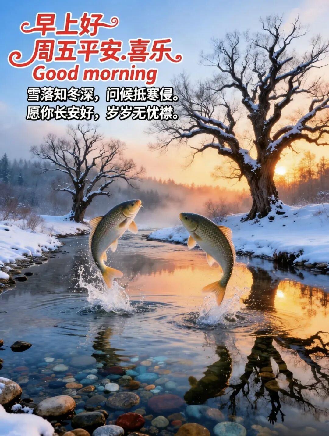 不言不語的時光,記錄着友情;不聲不響的文字,傳遞着感情;每一天的問候,傳遞着祝福。祝福所有的朋友:美好心情天天有,沒有煩惱和憂愁,只有快樂的理由,應對寒冷的暮秋。開心溫暖來相守,好運時刻跟你走。吉祥和你交朋友,平安健康永遠有,幸福美滿常相伴!早安!週五愉快!