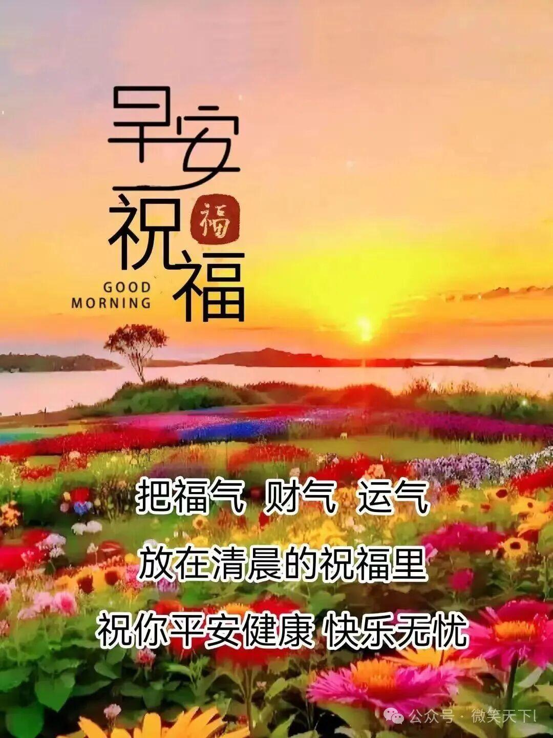 3、美好的早晨,問候送上,人人都願身心健康。心存感恩,心懷善良,幸福與你同行。天保人愛,福澤長存,願你的生命充滿陽光,一切都是最美好的安排。早上好,週五快樂!