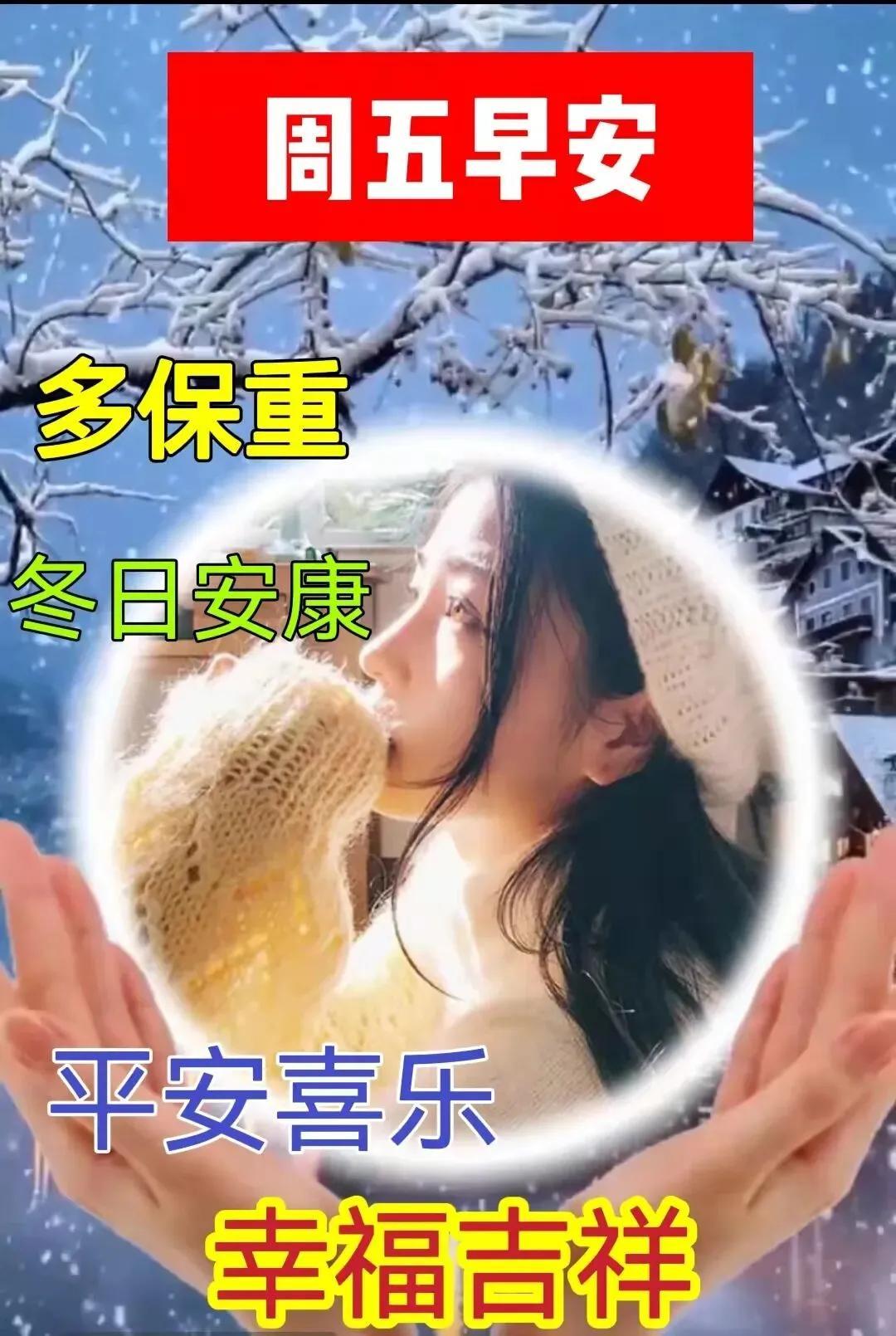 一片寒霜入冬涼,一句關心暖心房,寒風捎去我問候,添衣保暖彆着涼,彼此牽掛心中暖,清晨問候送吉祥,週五早安愉快!