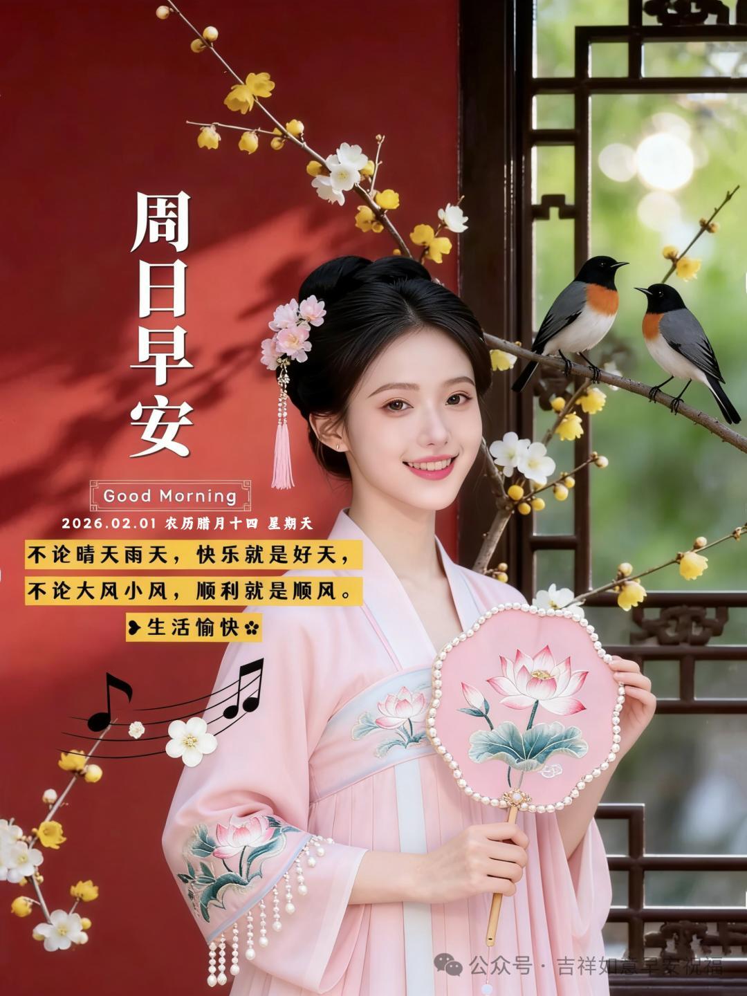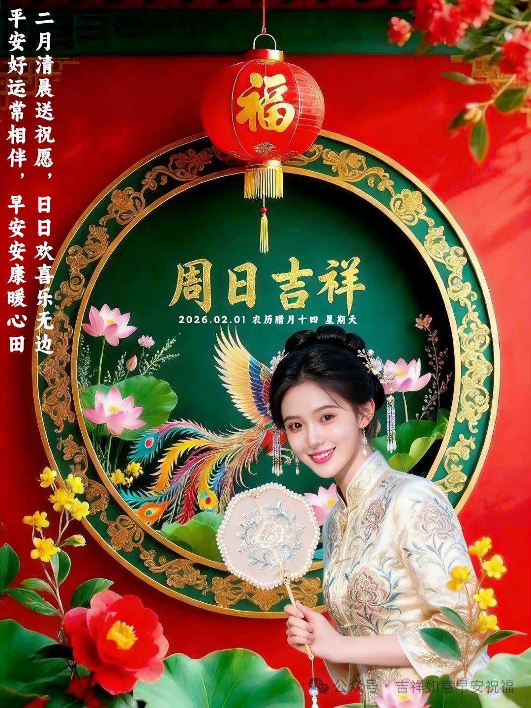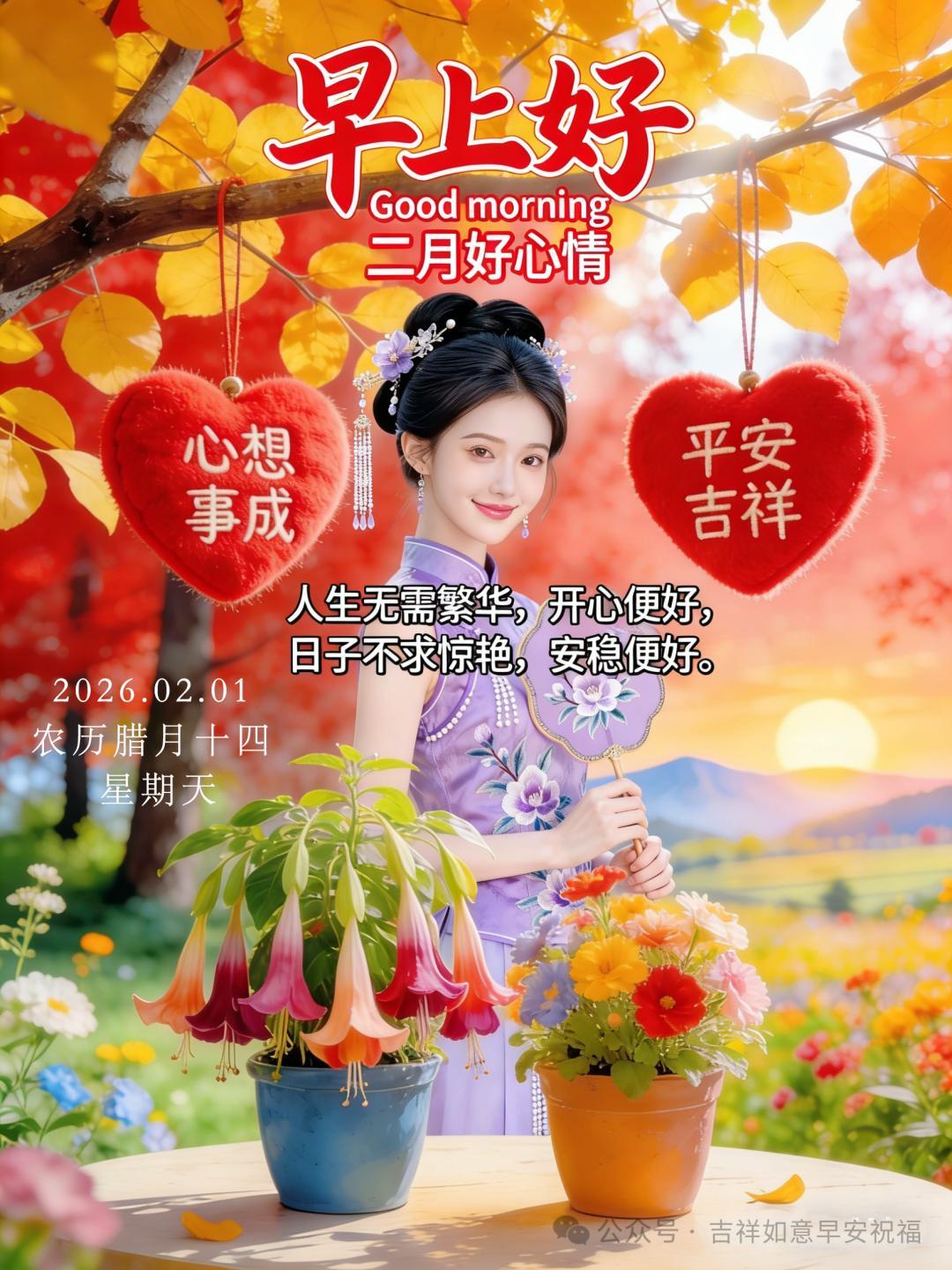 2026年2月1日週日早上好,週日早安問候語暖心圖片