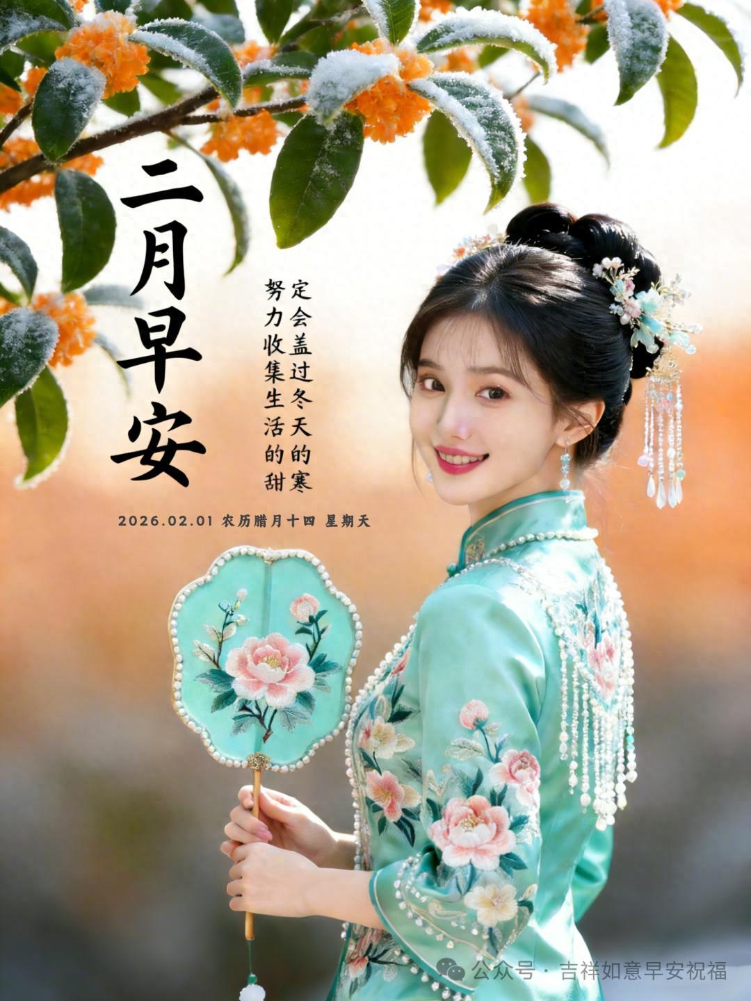 冬日漫漫,有你相伴,歲歲年年;暖陽灼灼,有笑有樂,歲歲安然;晨曦微亮,有問有惦,歲歲溫暖!二月惦念之中,有祝有願,願我們歲歲康健相隨,年年幸福相伴!早上好!