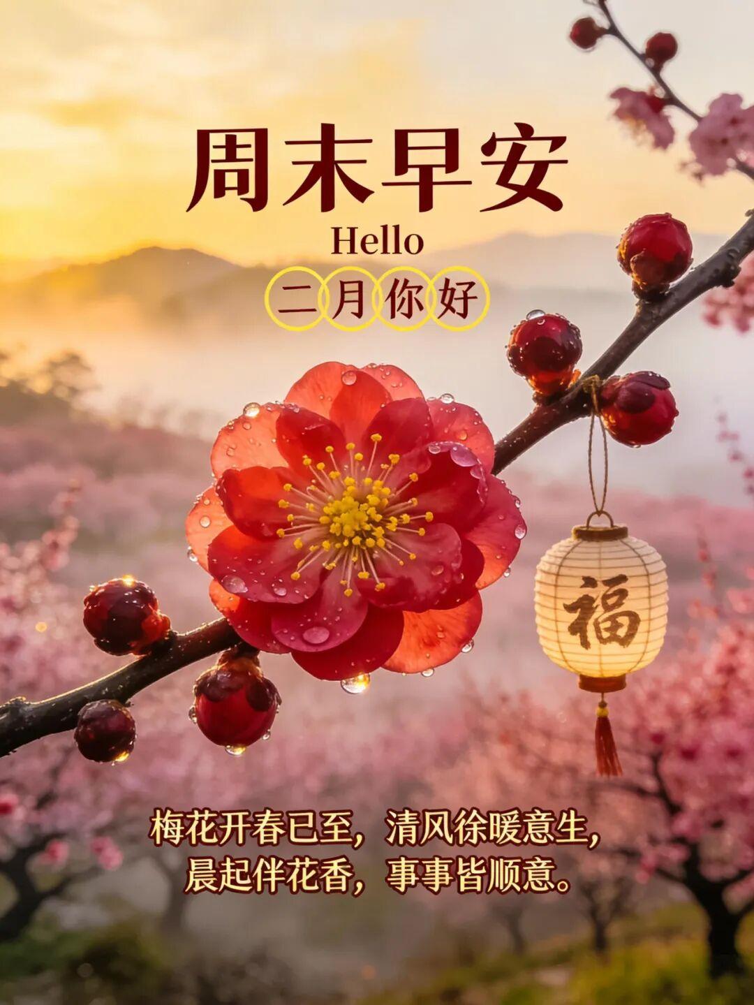 迎來二月新時光,吉祥好運常守望。願君生活芬芳,好運綿綿上場;件件事遂心願,財富滾滾入囊;胸懷常坦蕩,喜氣滿堂福綿長;日日笑容綻放,月月快樂無疆!