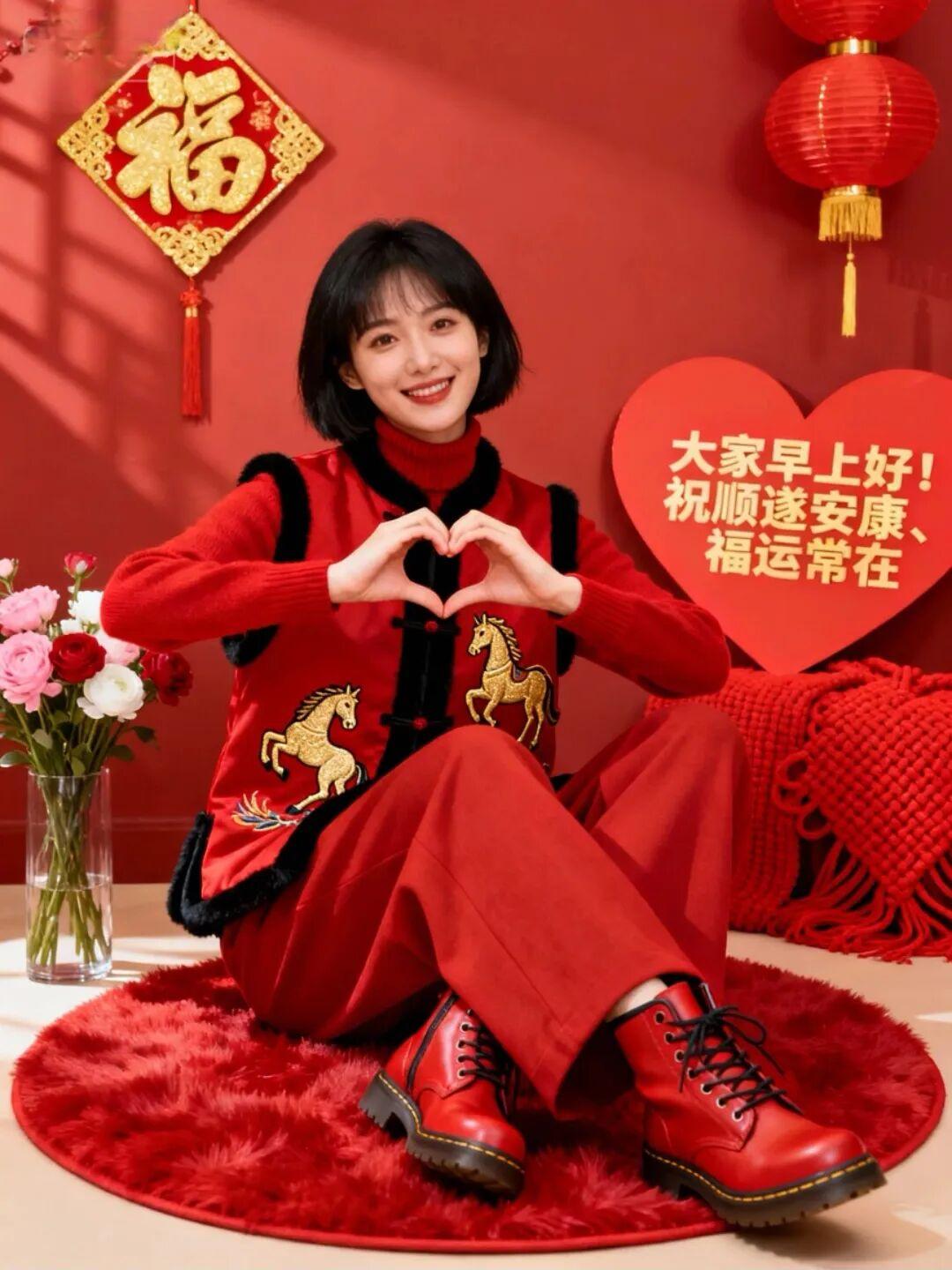 正月初八美女早安問候美圖|祝你開工大吉,財氣通天