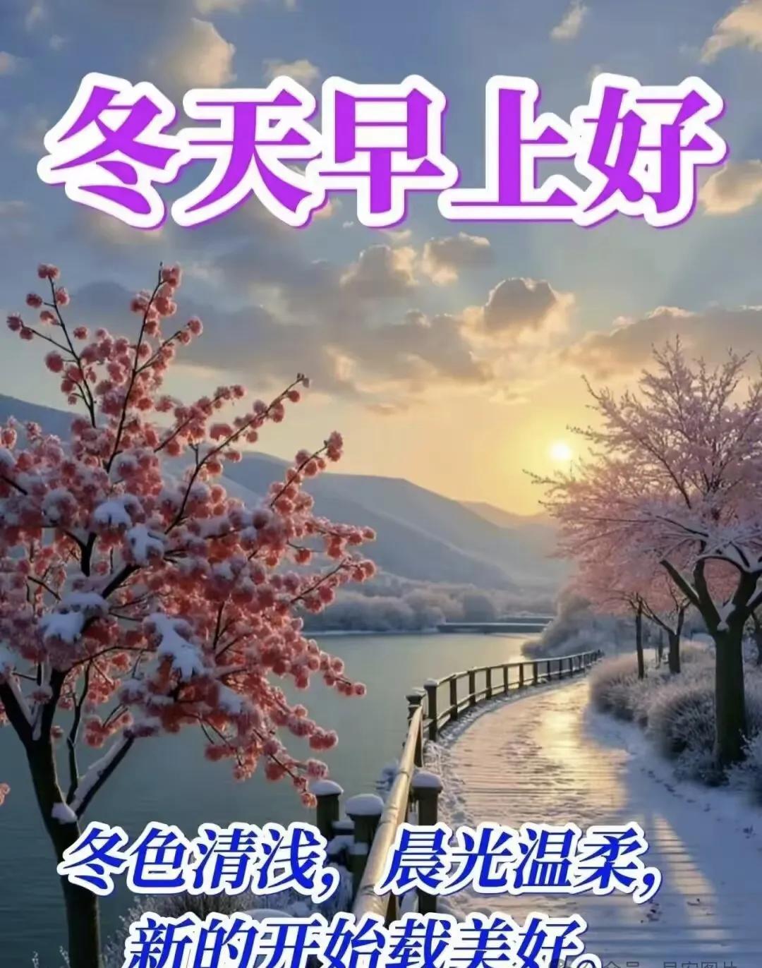 48張高清唯美冬日早安早上好祝福圖片,晨曦微露,暖意漸濃