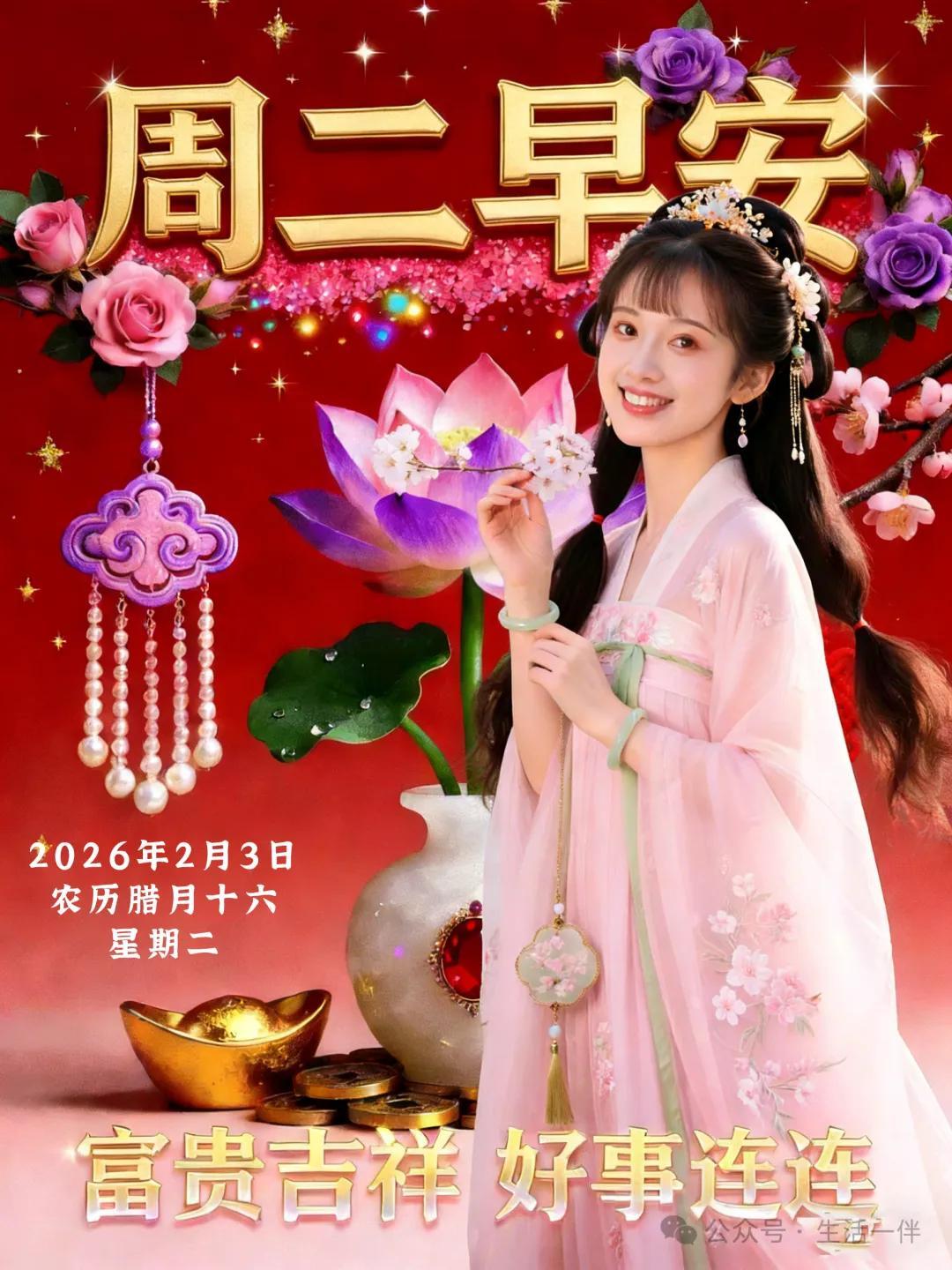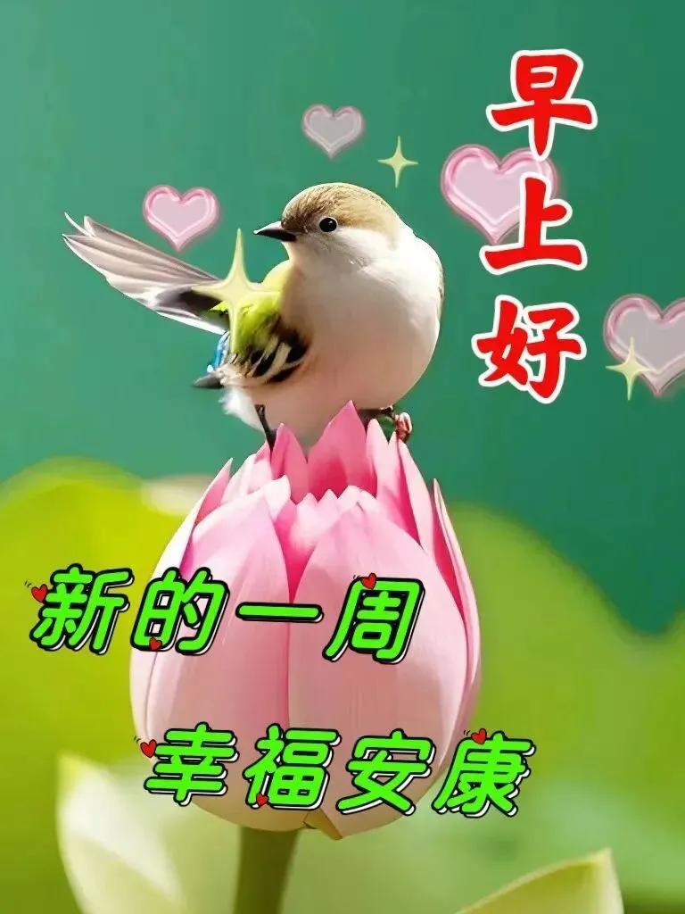 新周啓新程,晨安送溫情;工作皆順行✅,生活滿歡聲;健康常伴身,好運總相迎,事事如意心安寧!
