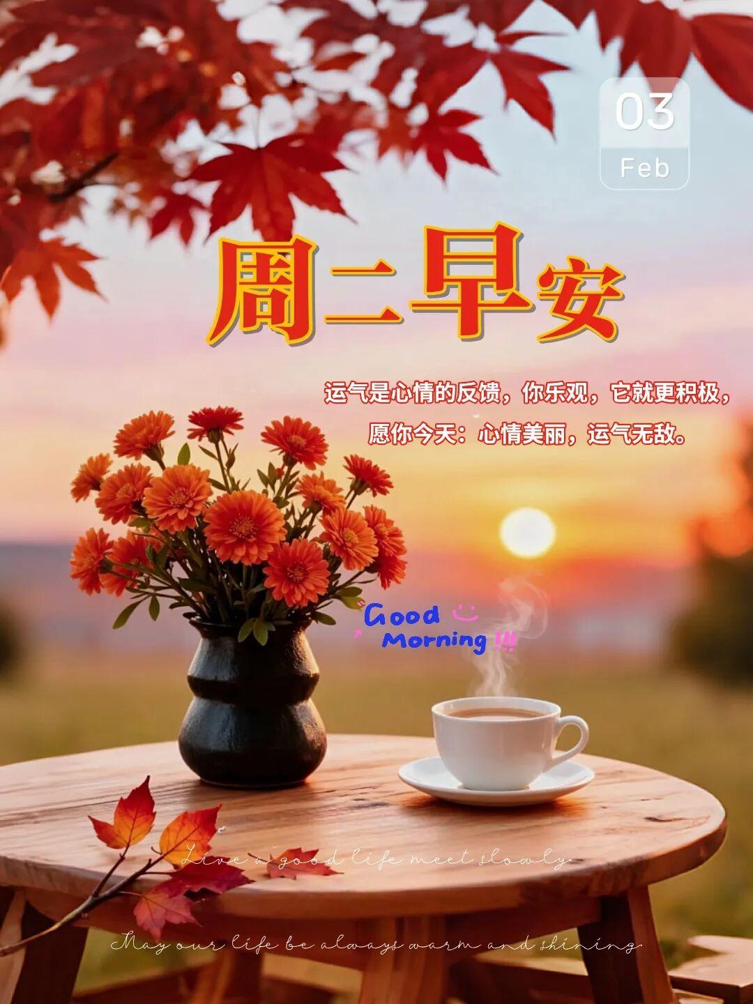 今天是2026年2月3日,星期二,早上好呀~晨光灑肩頭,萬事皆溫柔,願新的一天,事事順意,步步生花,平安喜樂,一路向陽❤️