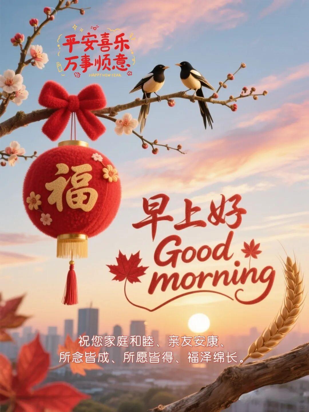 晨光溫柔,年味漸濃。願這嶄新的一天,溫暖常伴你身側,安康永駐你心間。願你與家人喜樂安寧,萬事順遂,將平凡日子過出幸福的滋味。早安,願你今日滿心歡喜❤️