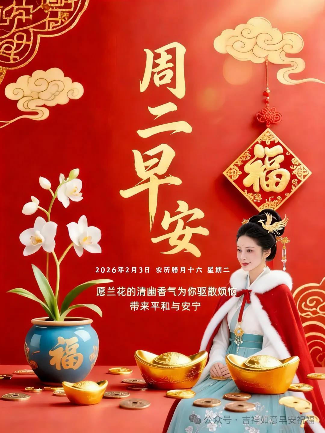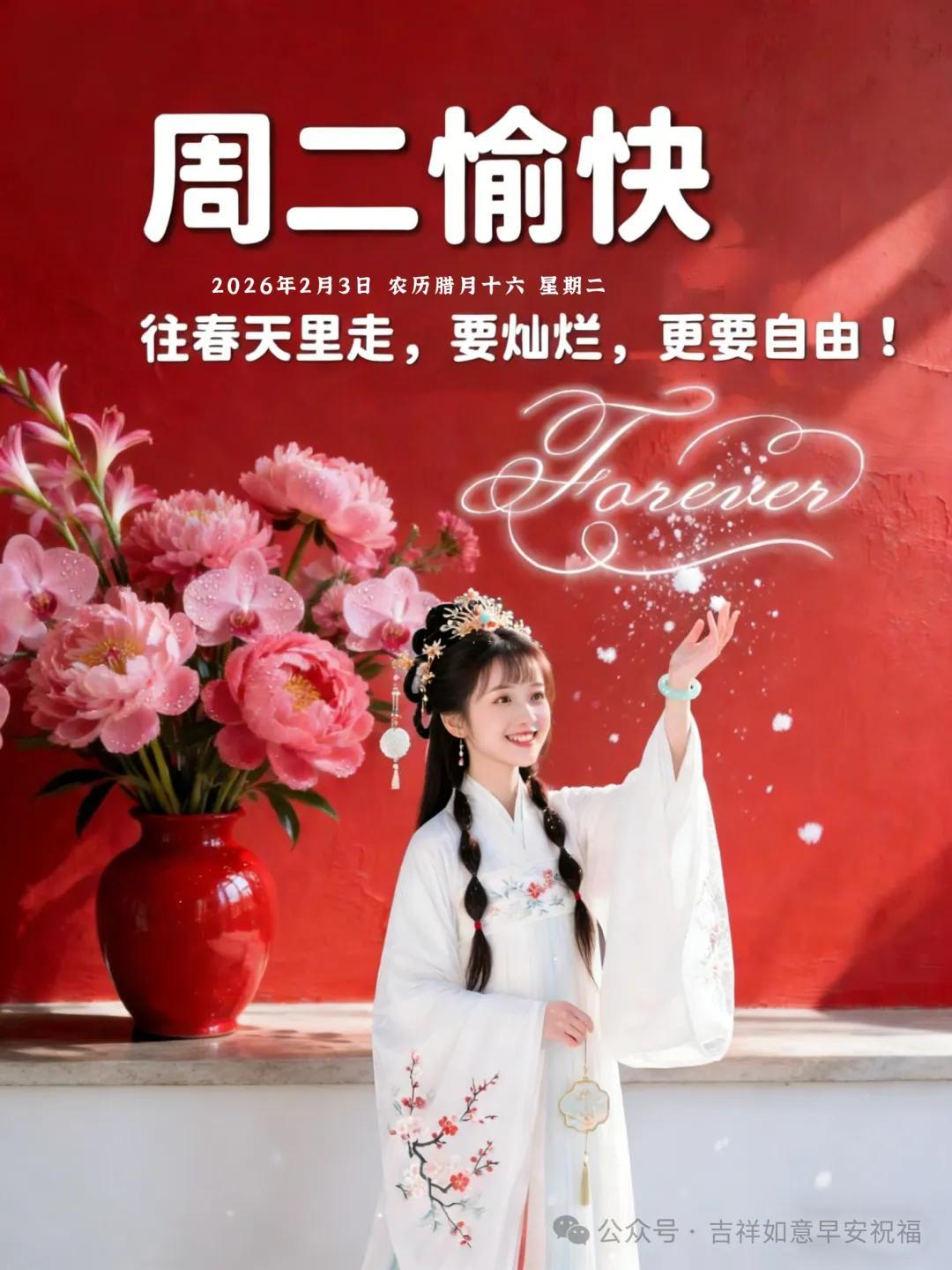 2026年2月3日週二早上好,週二早安問候語暖心圖片