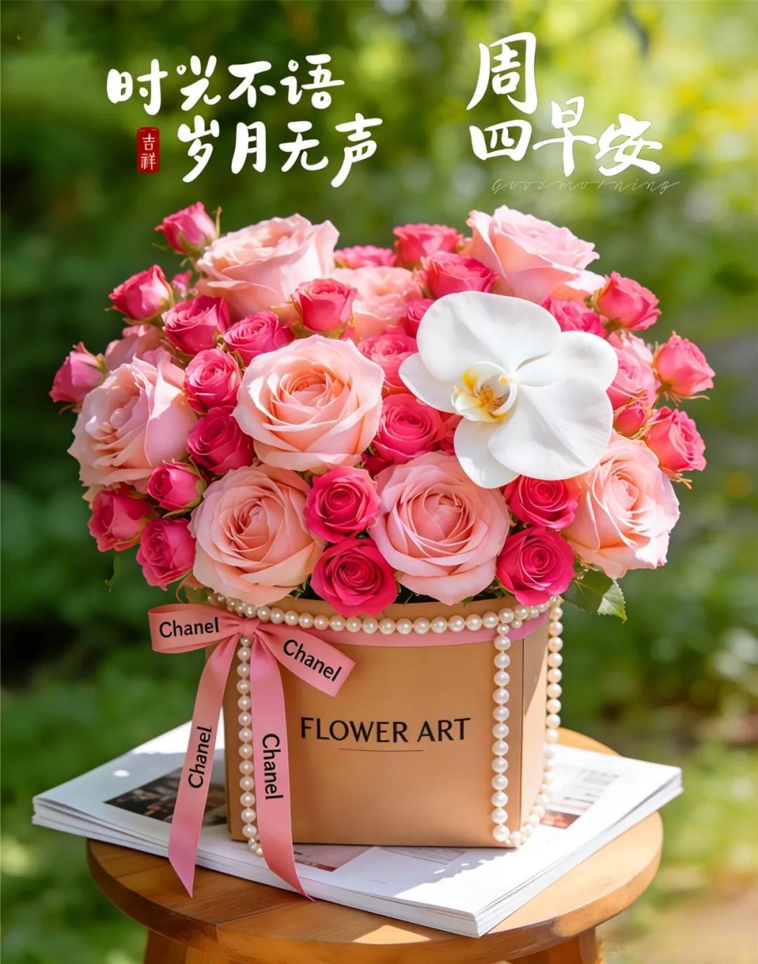 問候之花開四季,祝福之果甜如蜜,關心之風順着你,理解之水滋潤你,支持之雲繞着你,呵護之光照着你。每天都許個願望給你,快樂幸福屬於你,週四早上好!
