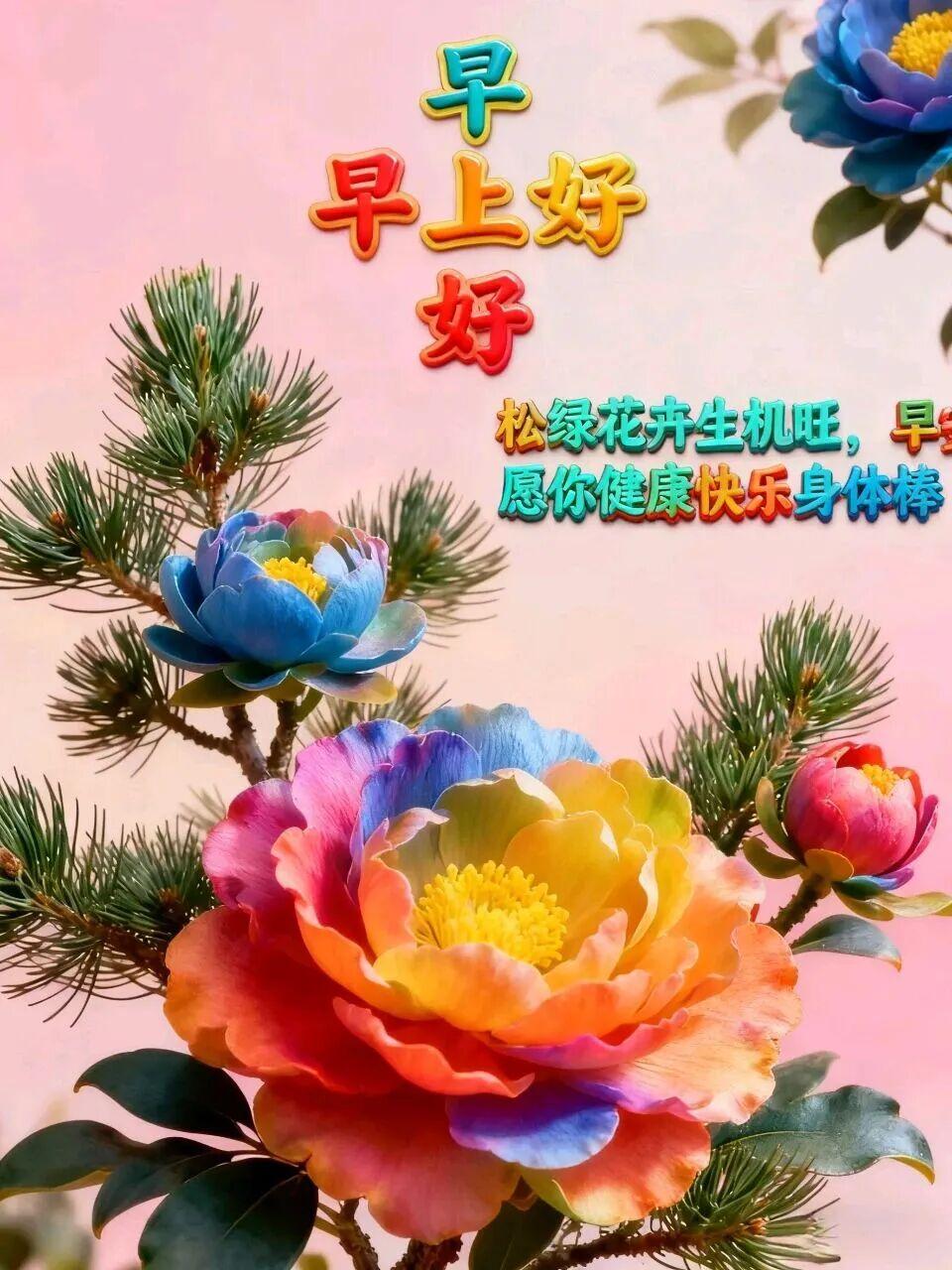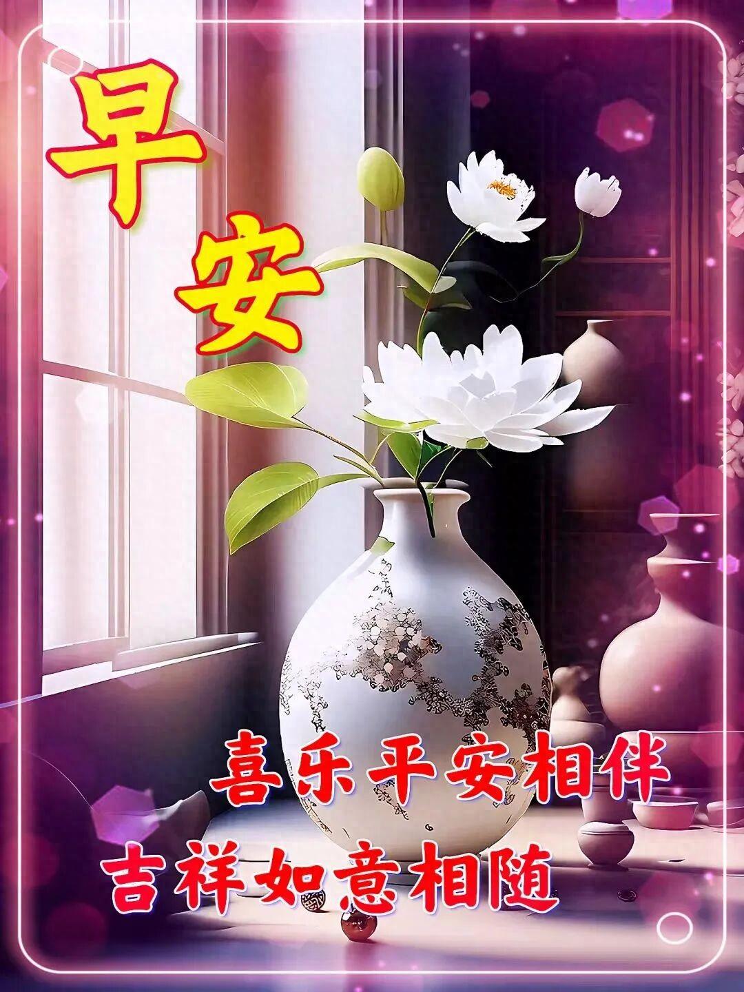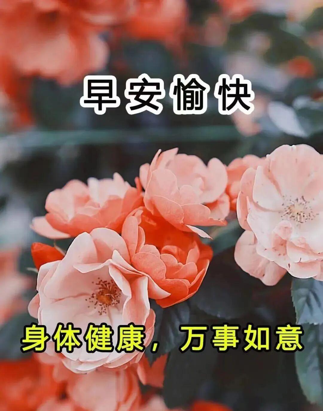 7、晨起福門開,快樂安康來,愉悅心態佳,生活充滿愛!新的一天,送上祝福:心想事成,萬事順遂!保重身體,福壽吉祥,凡事看輕,平安健康,早上好!
