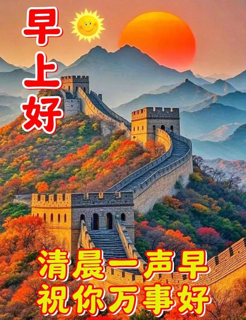 醒來問聲好,祝福要趁早,早餐要喫飽,衣帽穿戴好,出門開心笑,踏過幸福橋,老友一見面,忙把平安道,祝你心情妙,老年鴻運高!早安!