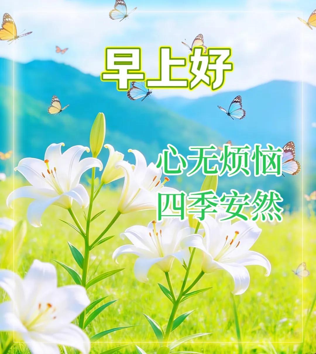 一聲早安,萬般祈願,順遂歡顏、吉慶平安!借一絲清風,令你神采煥然;借一抹晴光,暖你歲月流年;借一句吉語,佑你一生圓滿。各位朋友,週六早安!