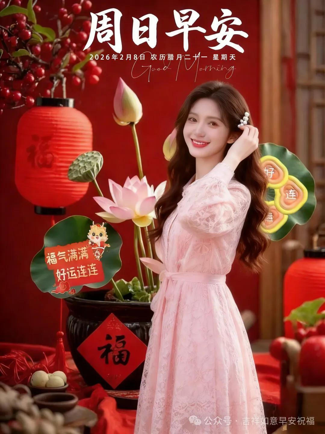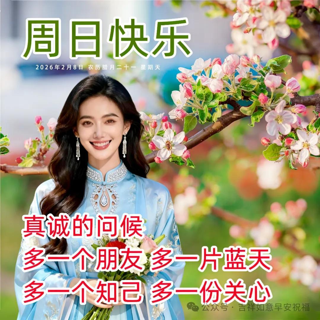 2026年2月8日週日早上好,週日早安問候語暖心圖片