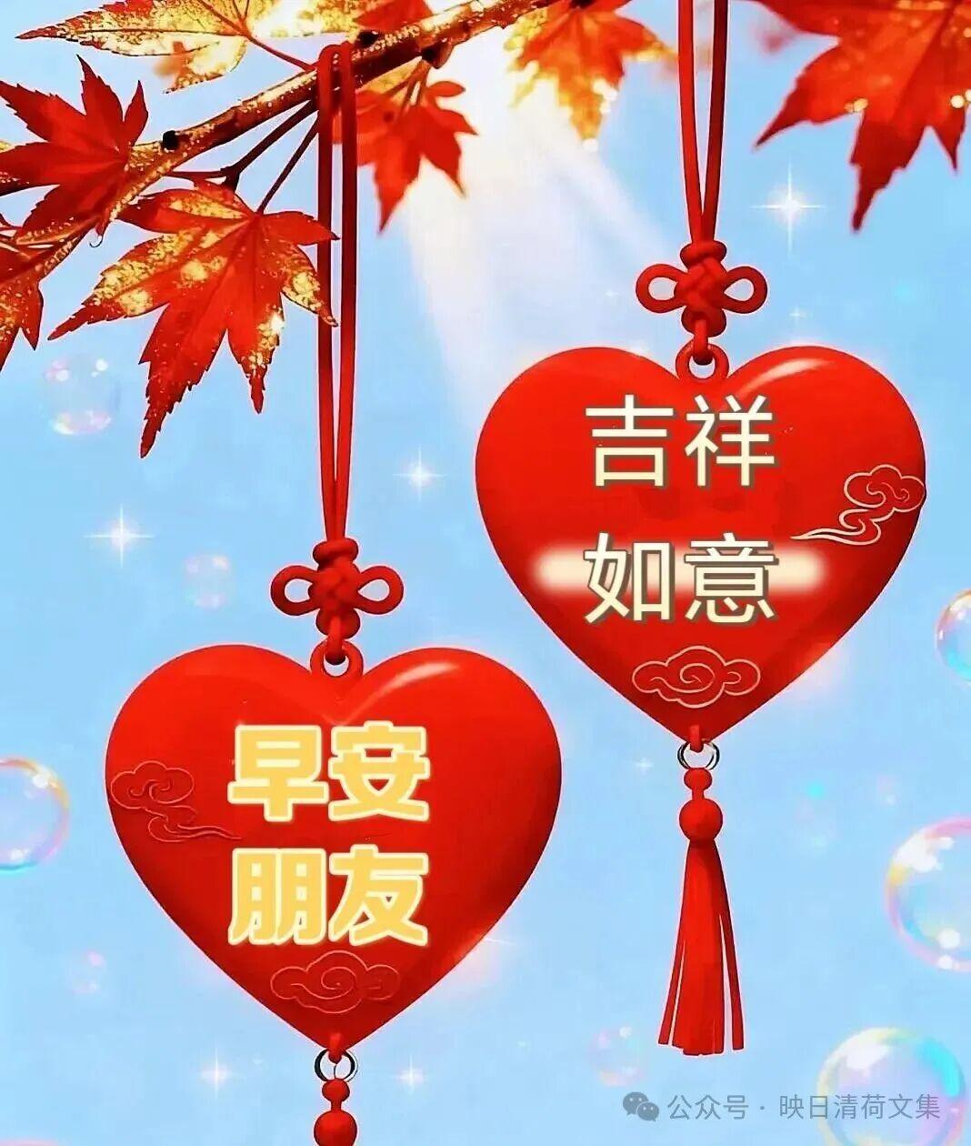 朋友心連心,微信傳佳音;雲中錦書來,快樂入襟懷;雁字擺造型,聲聲祝福勤;真情永不改,牽掛如滄海;明朝清風揚,好運伴你翔!新的一天,早安快樂!