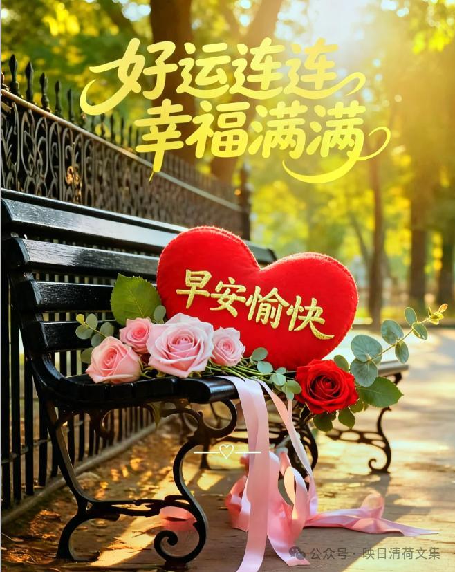 祝福有愛,問候有心;笑迎今天,期待明天;健康相隨,快樂相伴!清晨第一件事,就是帶着笑容,問候你平安健康,願我們情義永相隨,快樂每一天!大家早上好!