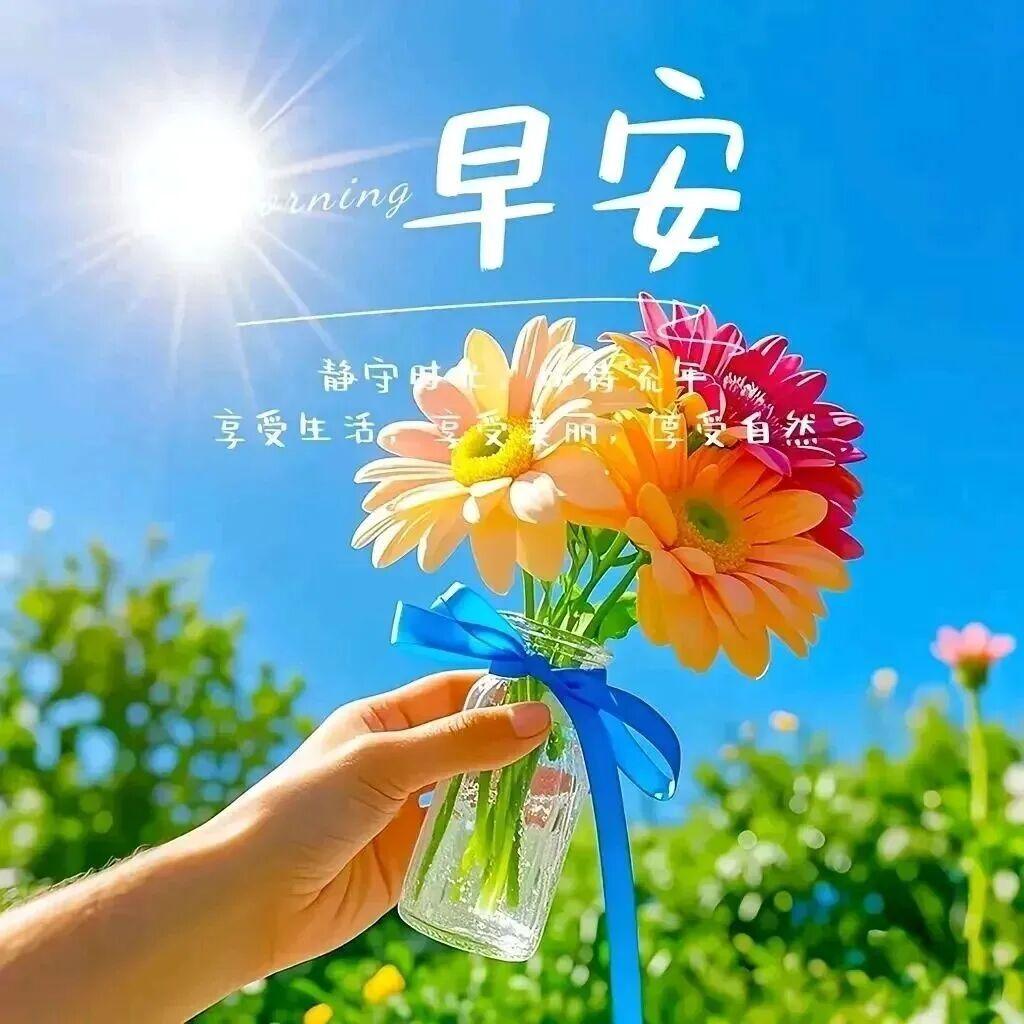 早上好,早觀陽光燦爛,晚看夕陽滿天。登上健康航船,駛向福壽家園。每天晨起問候,祝福一生平安。願生活,充滿陽光;願身體,健健康康;願心情,快樂舒暢;早上好!