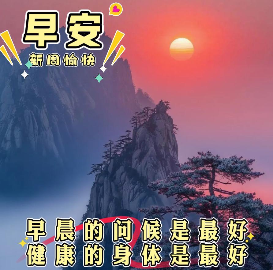 道聲晨安好運到,經常鍛鍊身體好,開啓全天好時光,甜蜜日子細品嚐,瑣事憂愁隨風散,秒秒吉星當頭照,知己關懷來問早,福祿壽喜齊報道!週一早安!