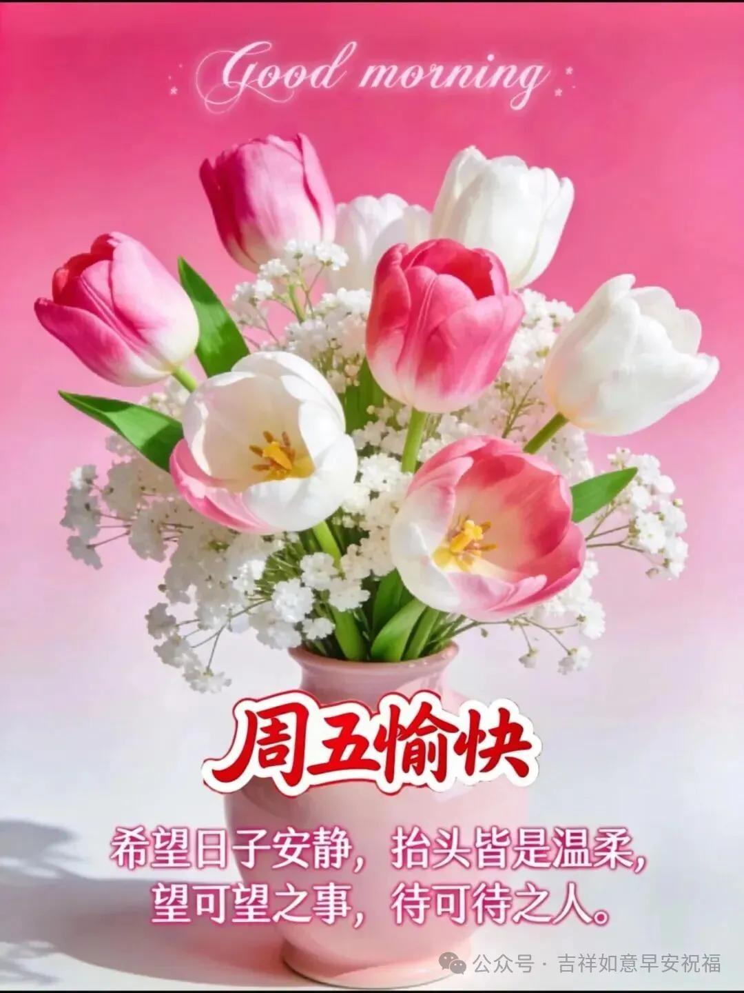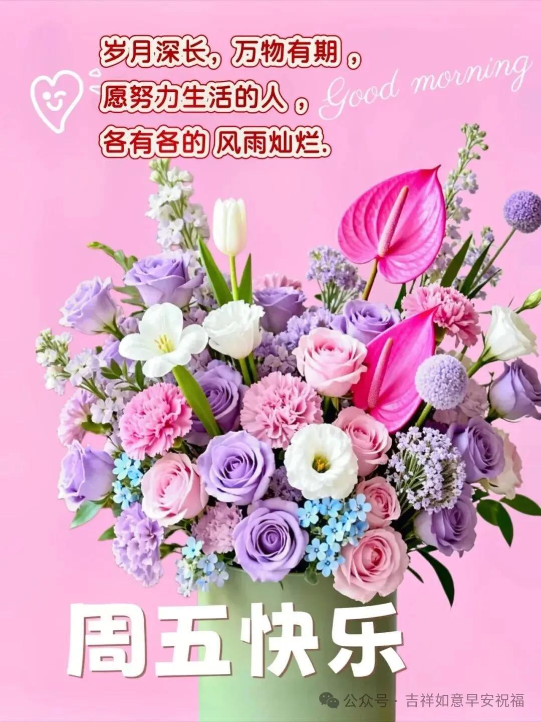 淡然一笑送昨天,開開心心過今天,滿懷希望迎明天,何懼晴雨與霜寒,無論酷暑與嚴寒,笑對人生每一天,早上好! 一個心願福壽長,一個期盼身安康,一個祝福幸福揚,一句問候心歡暢,週五早上好~