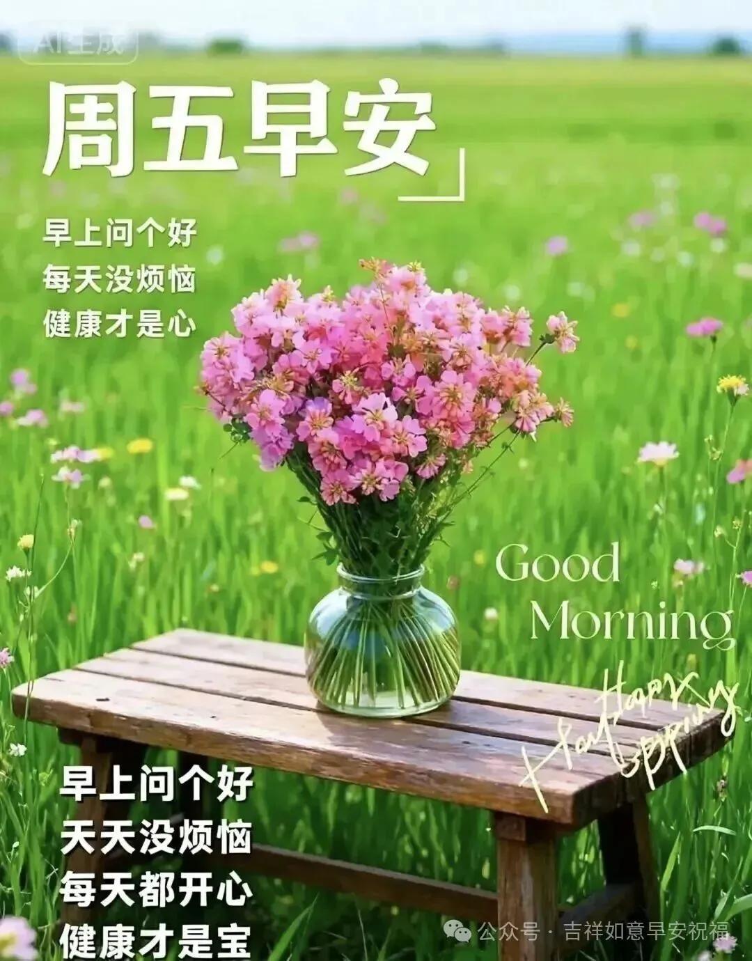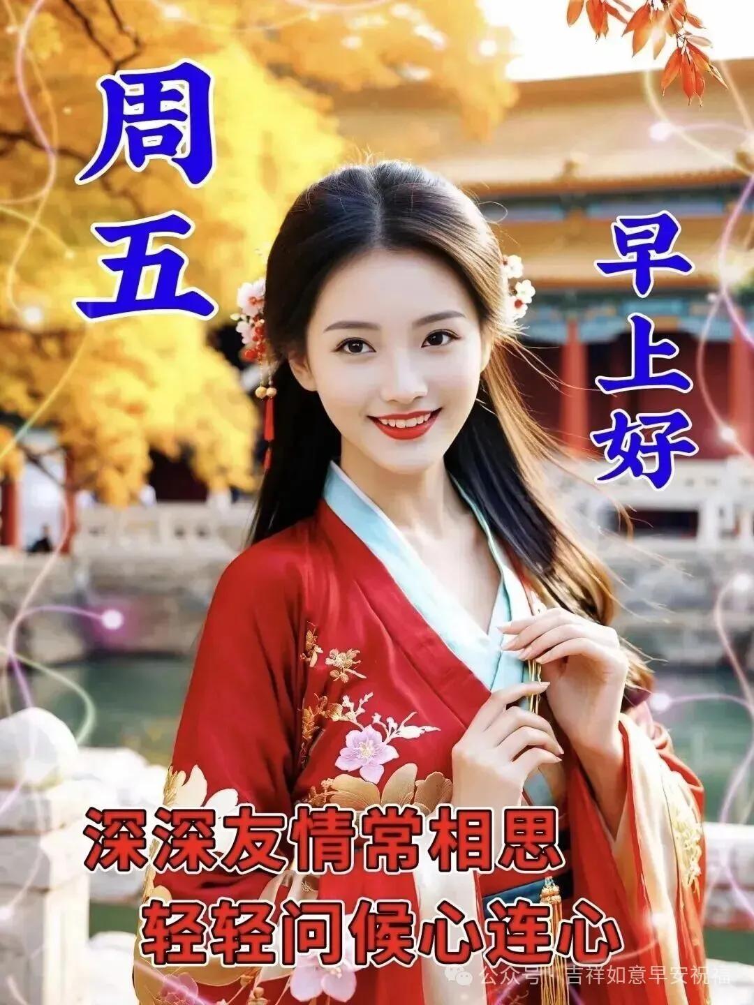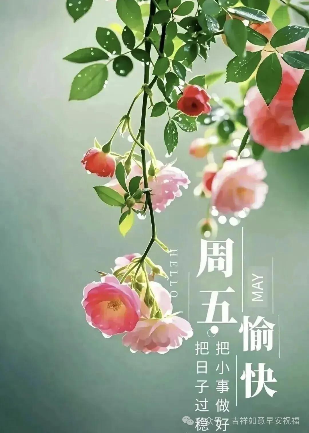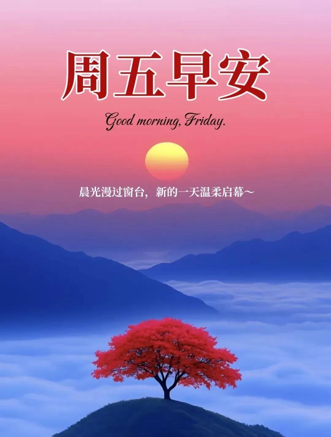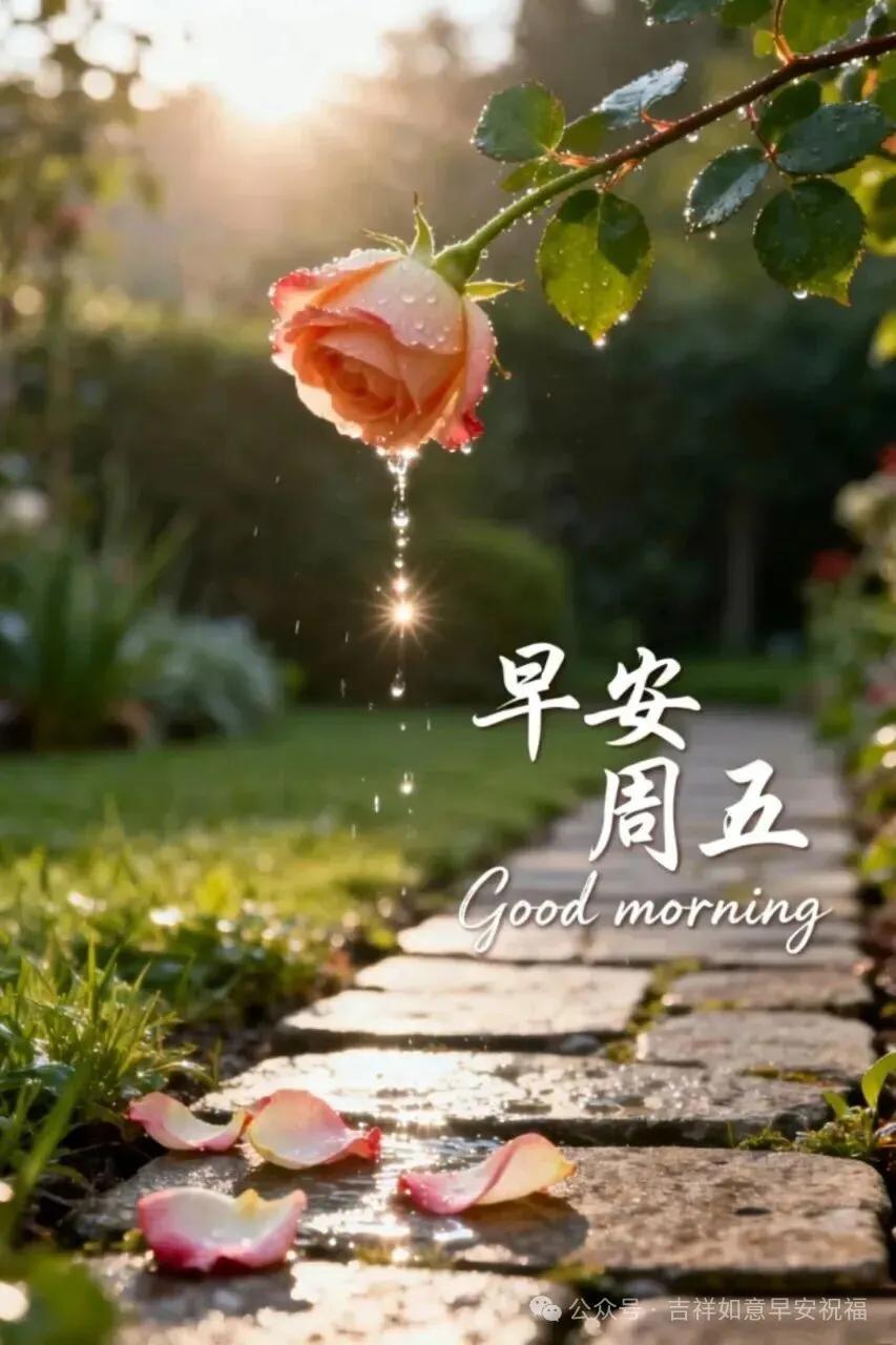 週五早安!新的一天,新的希望,願你精神滿滿,好運常傍,事事都順暢。心有陽光,一路芬芳,願所有美好如期而至,平安喜樂,萬事吉祥。