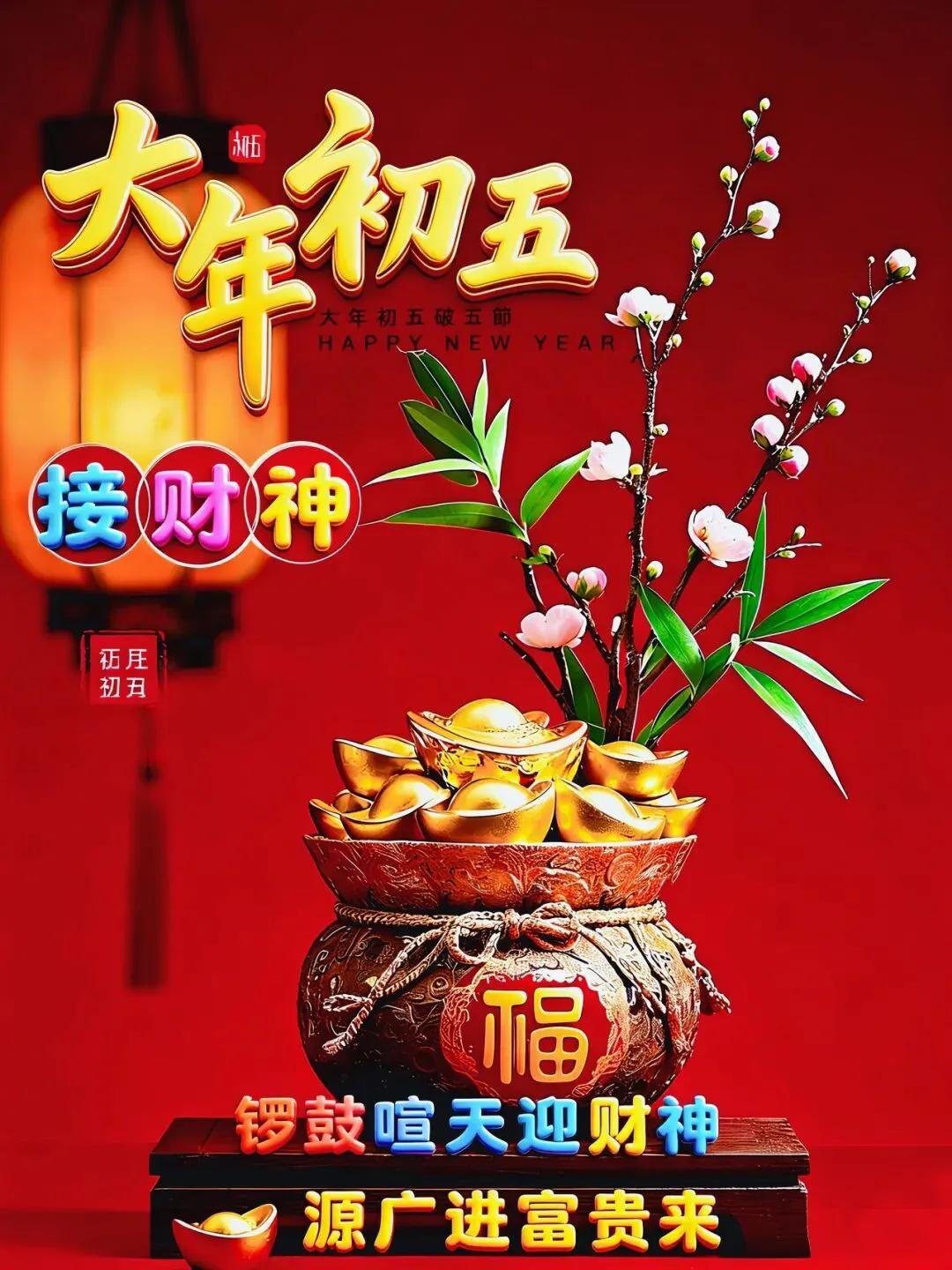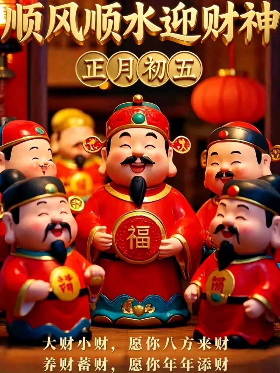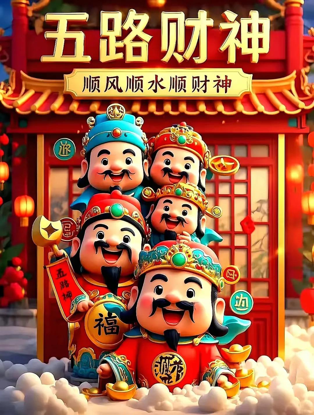 年初五祭財神,五路財神迎進門:東路財神送你福滿安康,西路財神送你財源滾滾,南路財神送你家和美滿,北路財神送你愛情美美,中路財神送你幸福平安。早安!