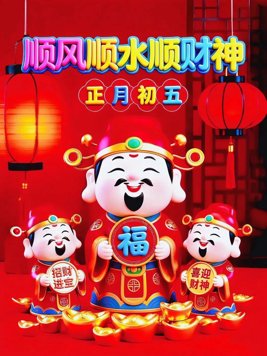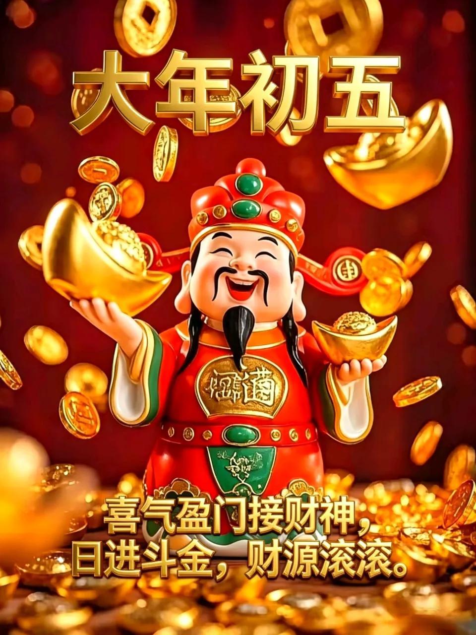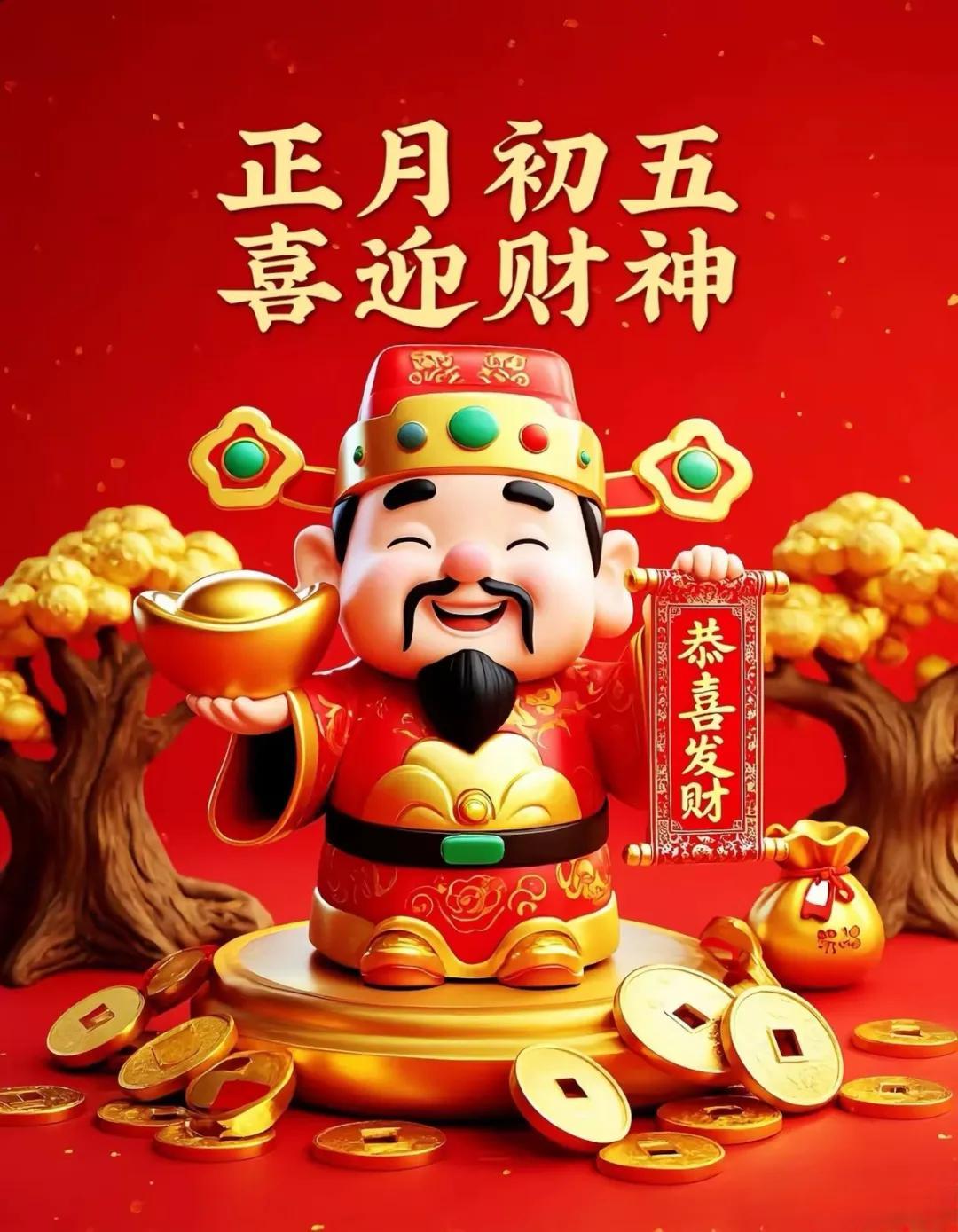大年初五,財神到!願大家都開門迎福,財源廣進,每一天都充滿陽光與喜悅。早安,願大家新的一年事事順遂,幸福滿溢!早上好