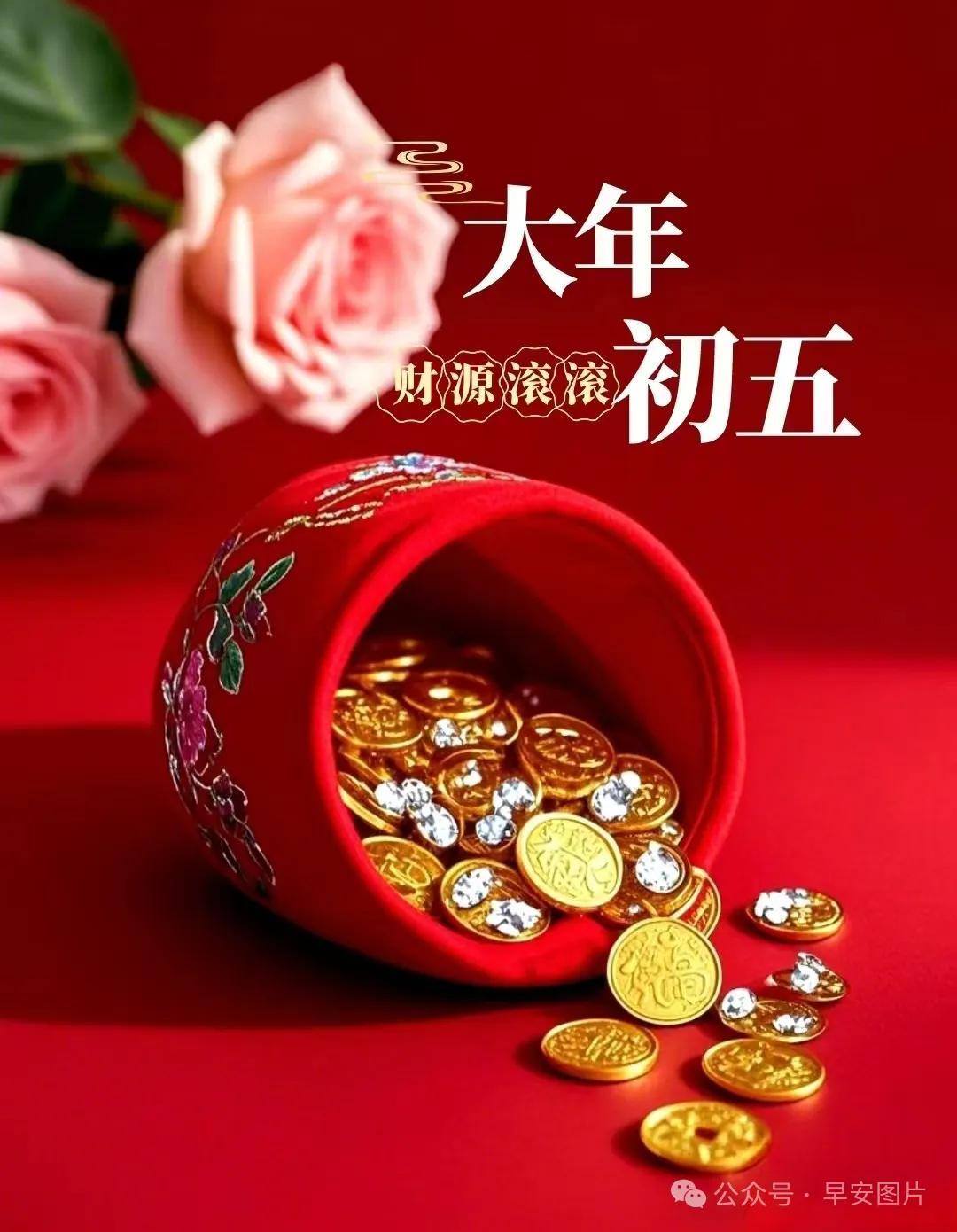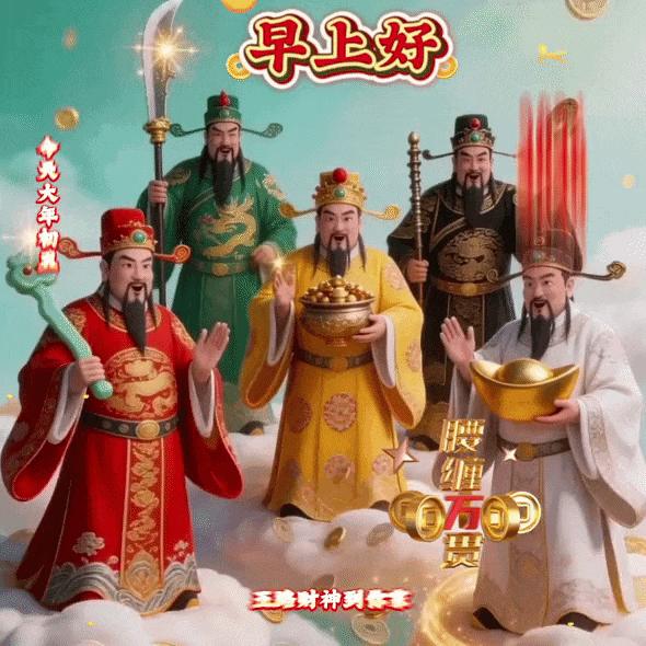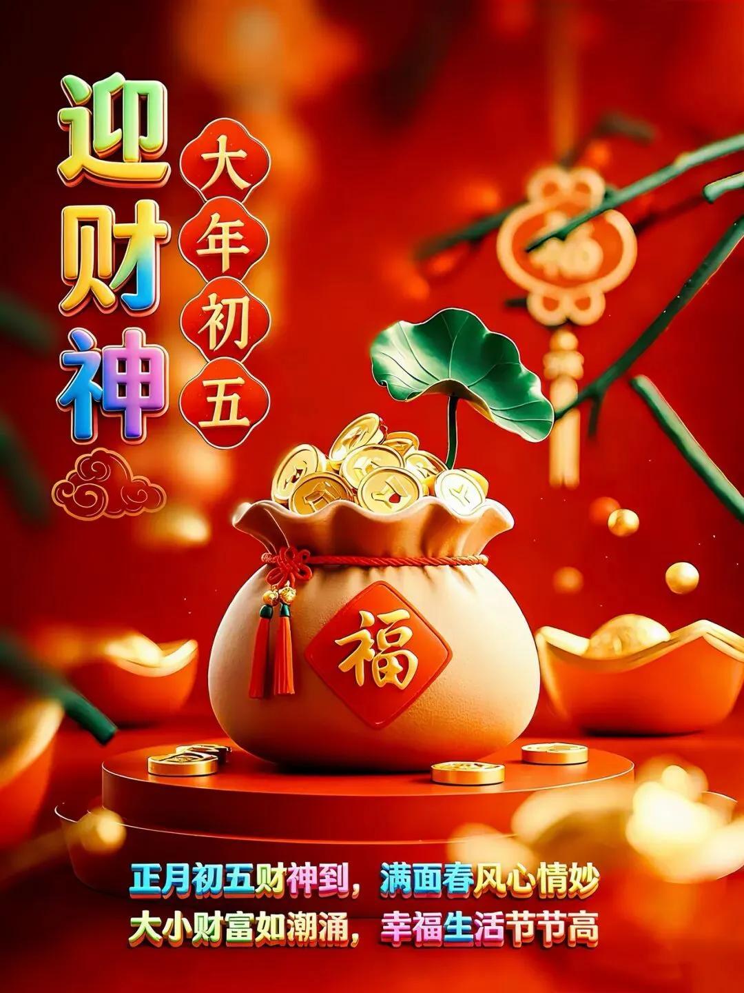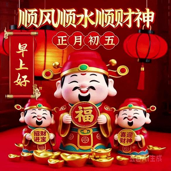 大年初五,財神到!願大家都開門迎福,財源廣進,每一天都充滿陽光與喜悅。早安,願大家新的一年事事順遂,幸福滿溢!早上好