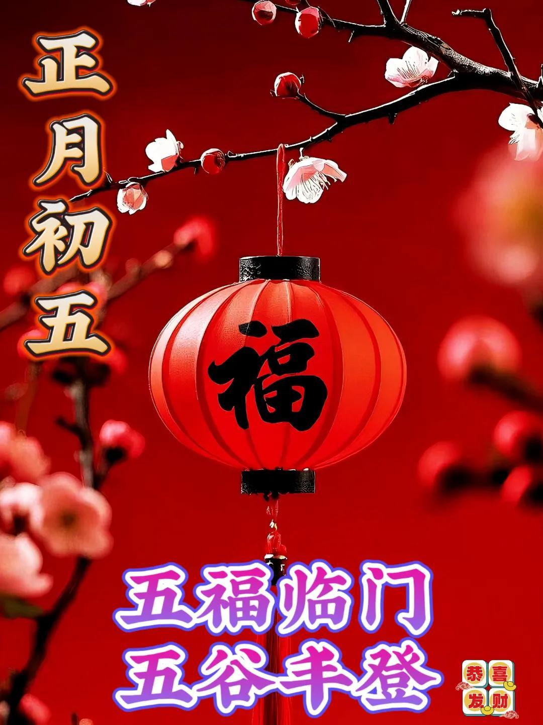 ❤️大年初五拜個年,歡歡喜喜過大年,風調雨順平安年,吉祥如意健康年,財源廣進發財年,美夢成真成功年,五穀豐登豐收年,祝君美美滿滿幸福年!