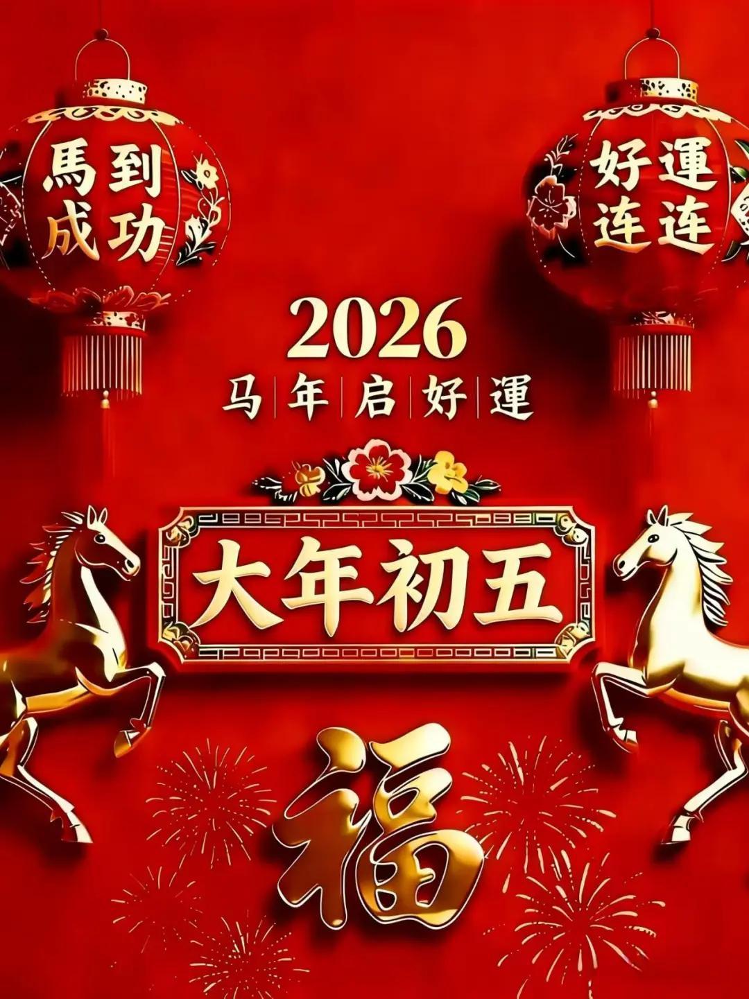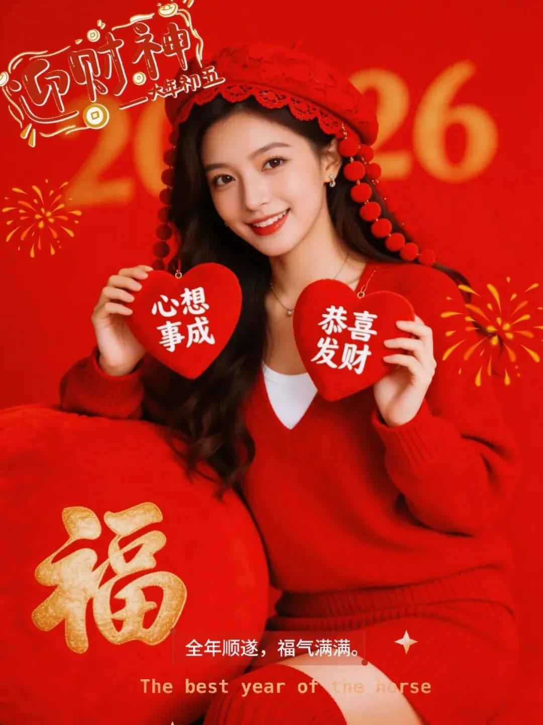 正月初五,迎財納福。借五路財神之光,照亮丙午馬年的順遂之路。願財源滾滾入家門,不僅有日進斗金的歡喜,更有富貴安康的底氣。祝萬事勝意,闔家幸福,平安喜樂!