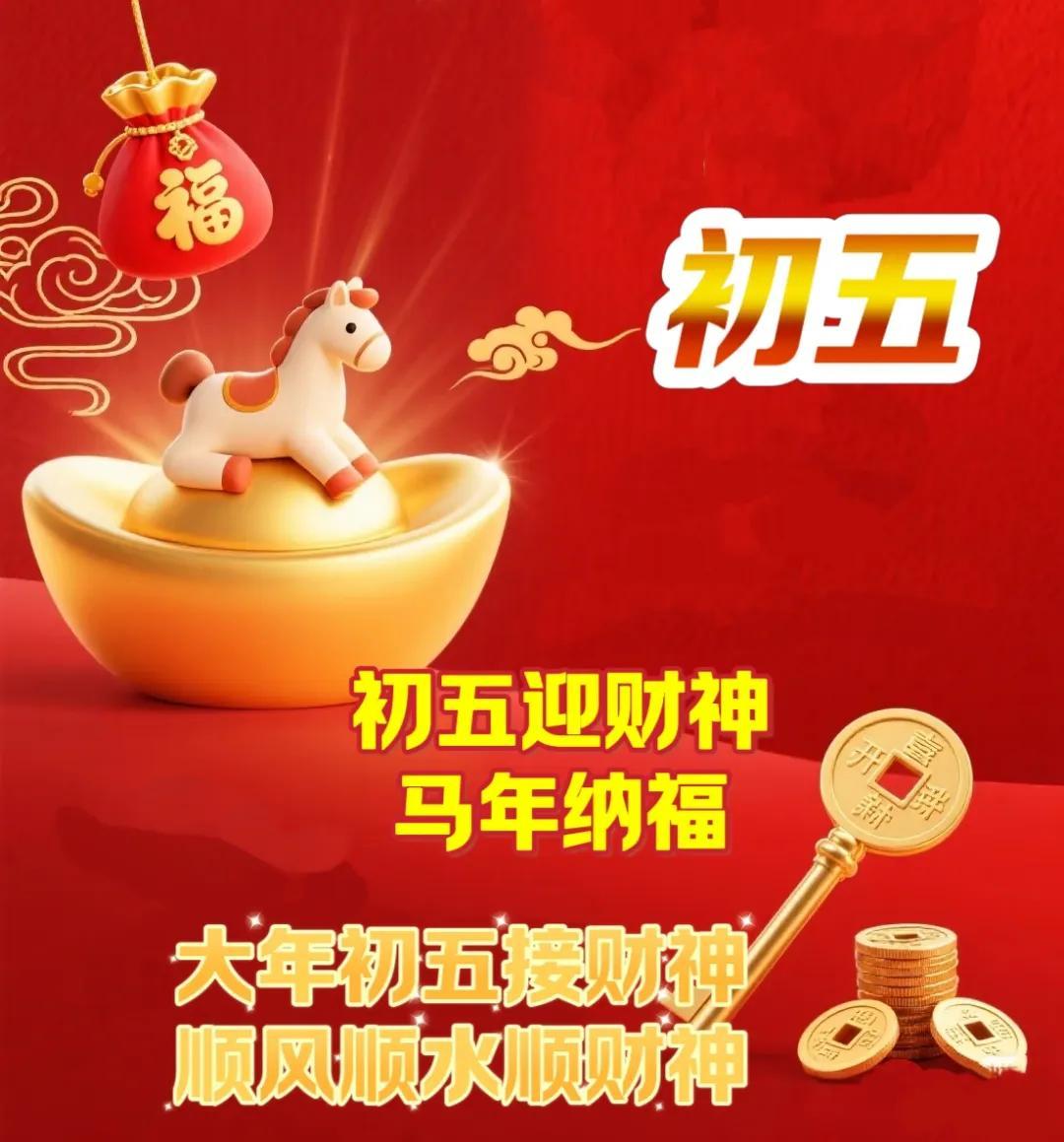 大年初五,財神到!恭喜發財、大吉大利!願2026年財運亨通,馬年發發發!新的一年發大財,行大運,好事連連,幸福美滿!