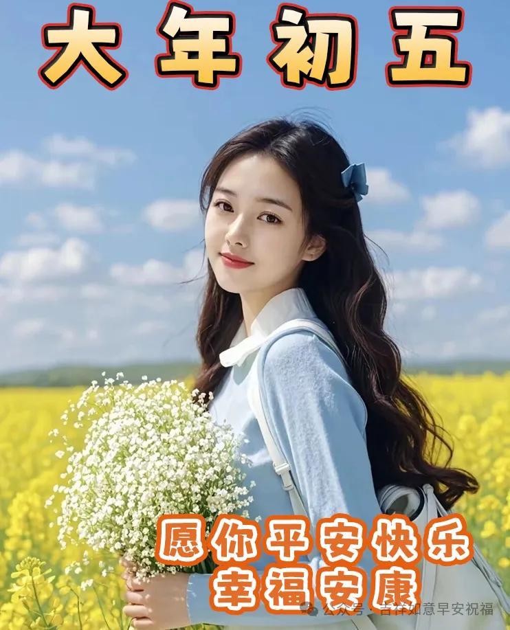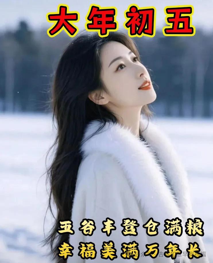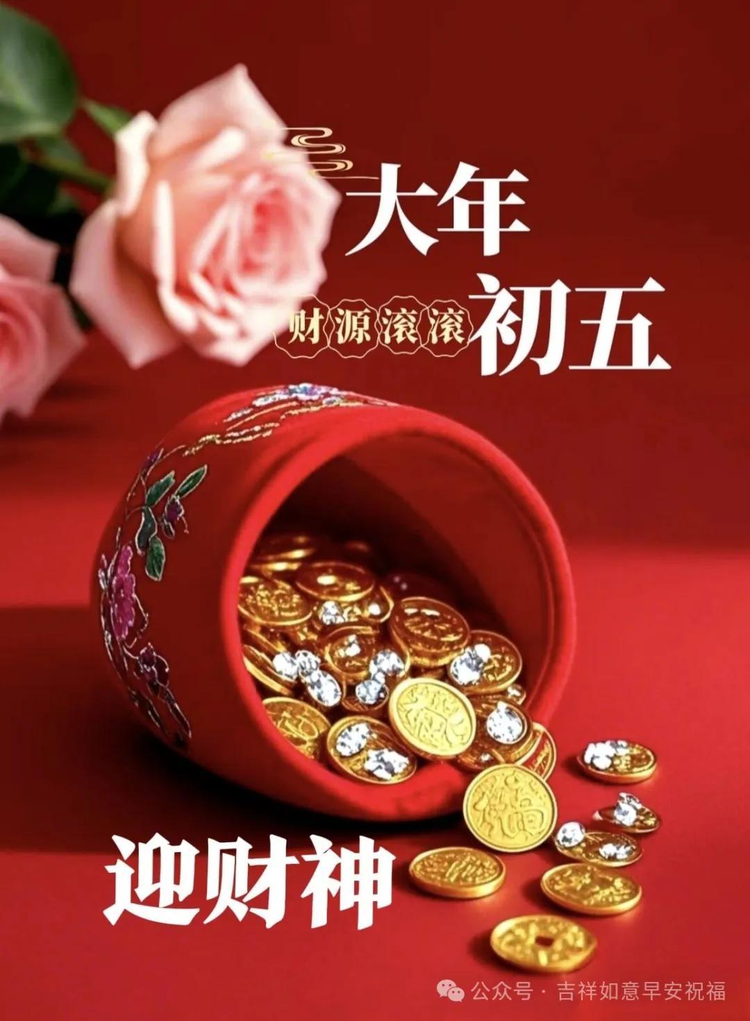 初五陽光照滿山,招財進寶春風蕩。五路財神喜洋洋,好運連連財滿盤。過年好時光甜蜜,歡聲笑語樂開懷。美滿富貴永相伴,初五愉快又如願!❤️