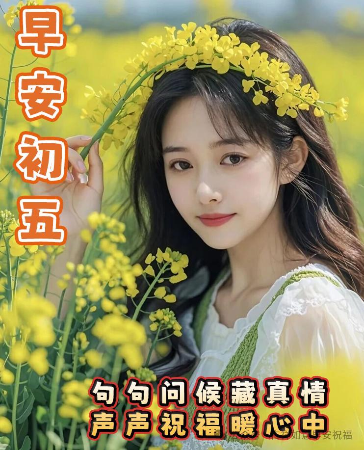 大年初五,問個早;情真摯,福傳到;要記得,放鞭炮;一年裏,財氣繞;家和睦,事業高;愛情美,相伴老;祝你能,天天笑;好日子,步步高!早安喲~!