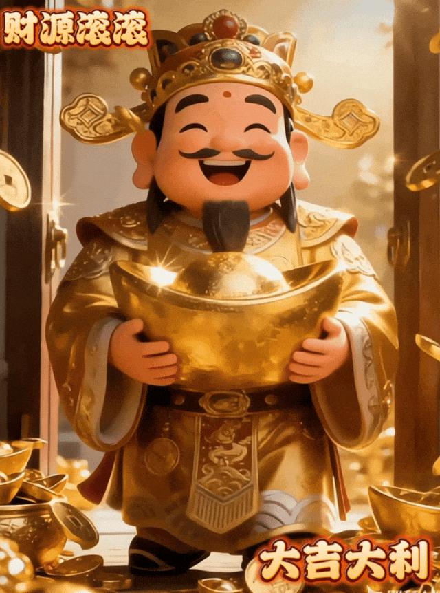 正月初五財神日,攜一家親人,敬二盤貢品,焚三柱高香,拜四路財神,祈五福臨門,求六方大順,願七星高照,聚八面財源,保九族興旺,過十分好年。馬年大吉!⭐