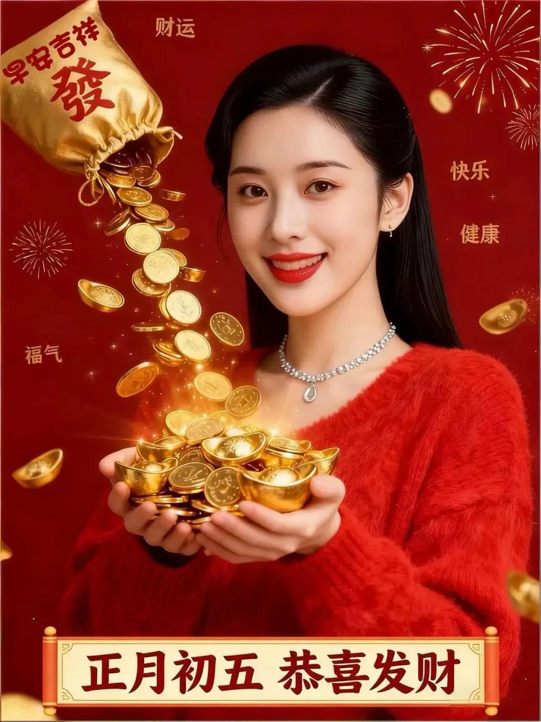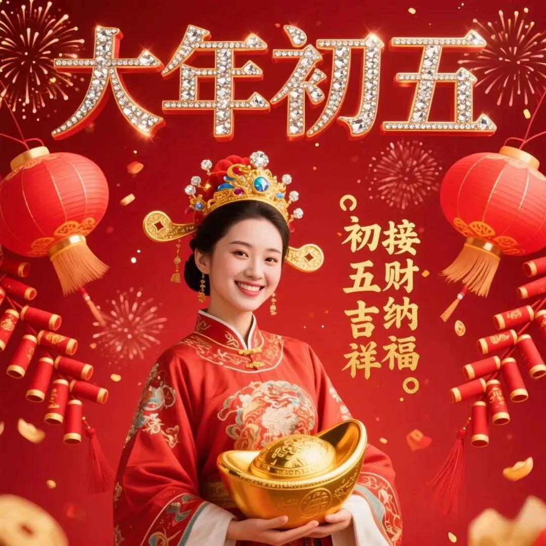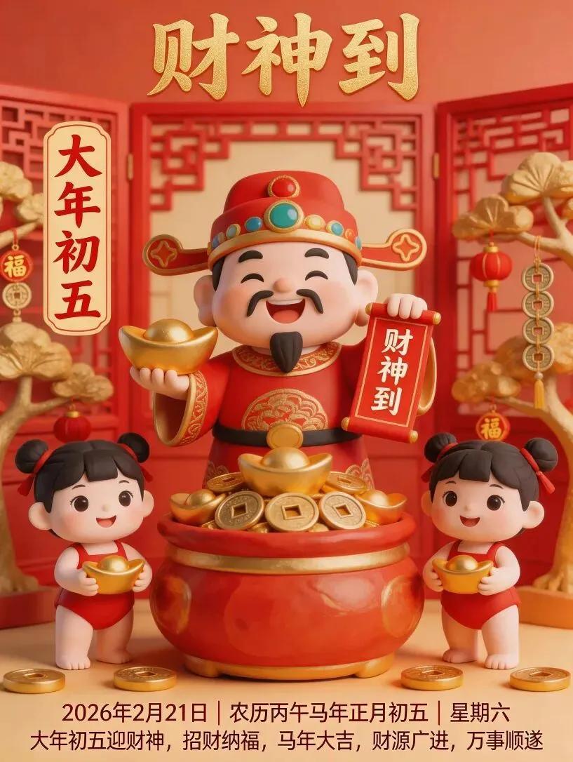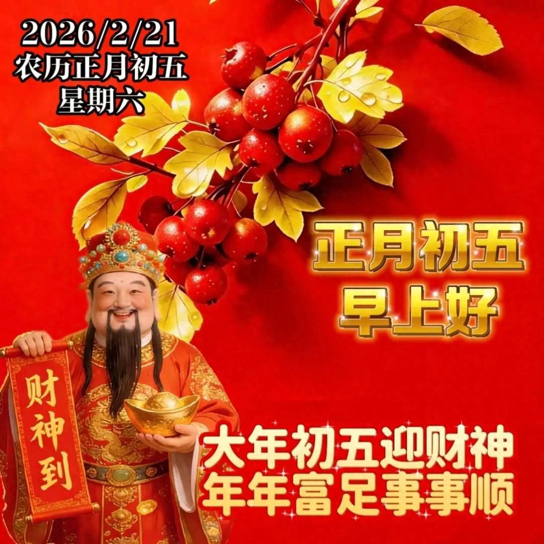 年初五,迎財神,其實是迎那個努力向上的自己。破五“破”的是舊歲的遲疑,立的是新年的篤定。願你以夢爲馬,不慌不忙;接財納福,步履鏗鏘,2026,我們一起旺!迎財神 破五大吉。
