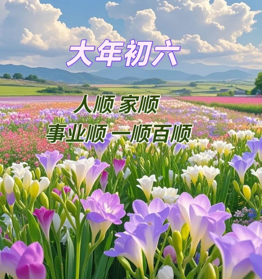 正月初六,六六大順,五湖四海,四季發財,三陽開泰,二分明月,一帆風順,順利之日。一順百順,二滿三平,三星在天,四通八達,五福臨門,六方興旺!早安順順順!