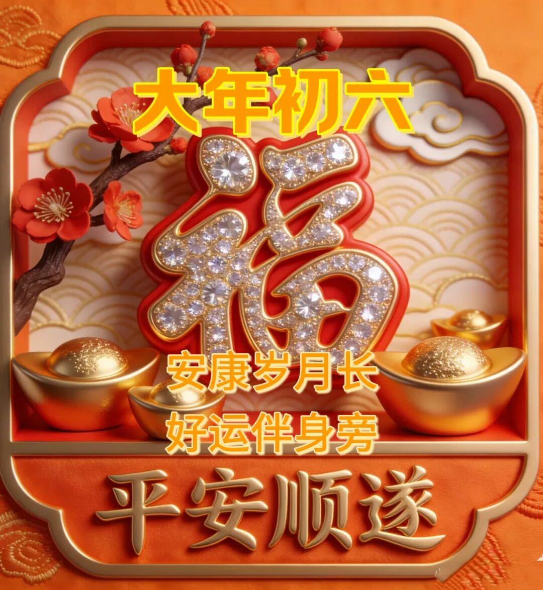 大年初六到,鴻運照,煩惱的事兒往邊靠,祝君出門遇貴人,在家聽喜報!年年有此時,歲歲有今朝!願你和你的家人幸福快樂!萬事如意!早上好!