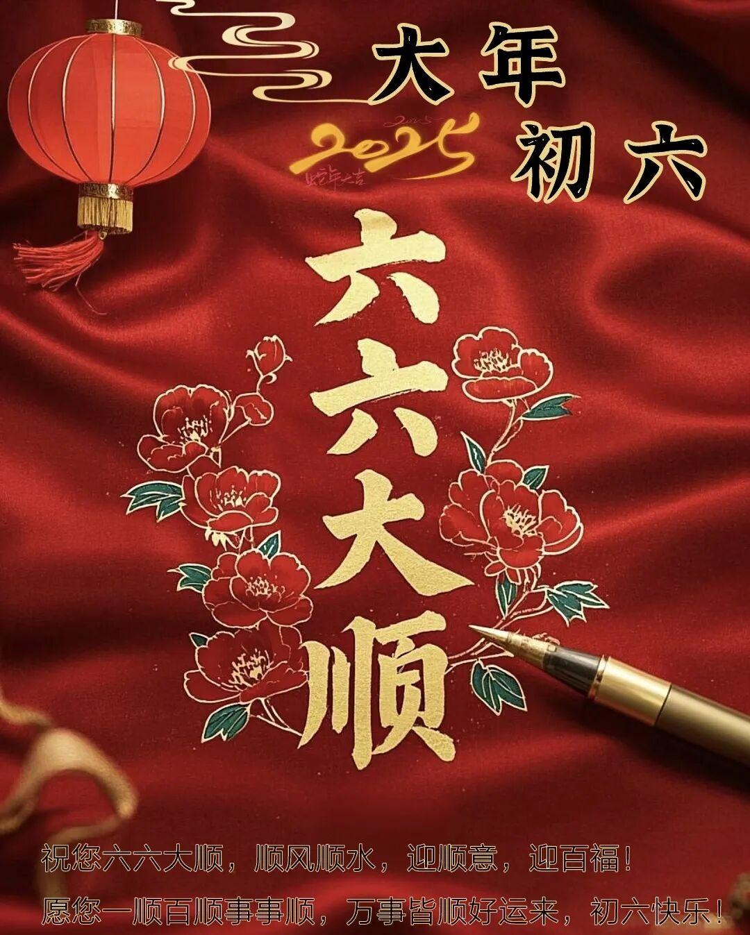 初六到,好運繞!願新的一年,煩惱“溜”走,快樂“留”下;黴運“散”開,福氣“聚”來。六六大順,喜氣洋洋!